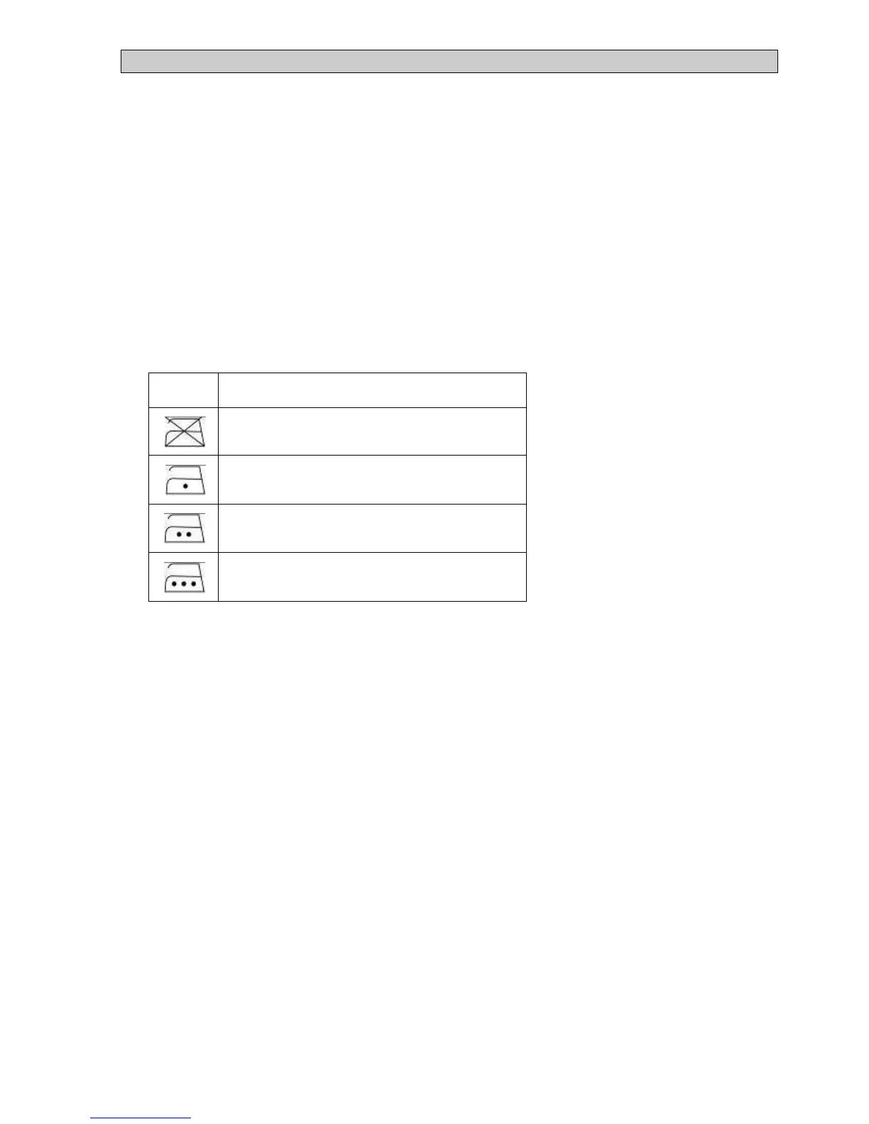 2. If you do not have the ironing instructions at hand, the table below may help you.