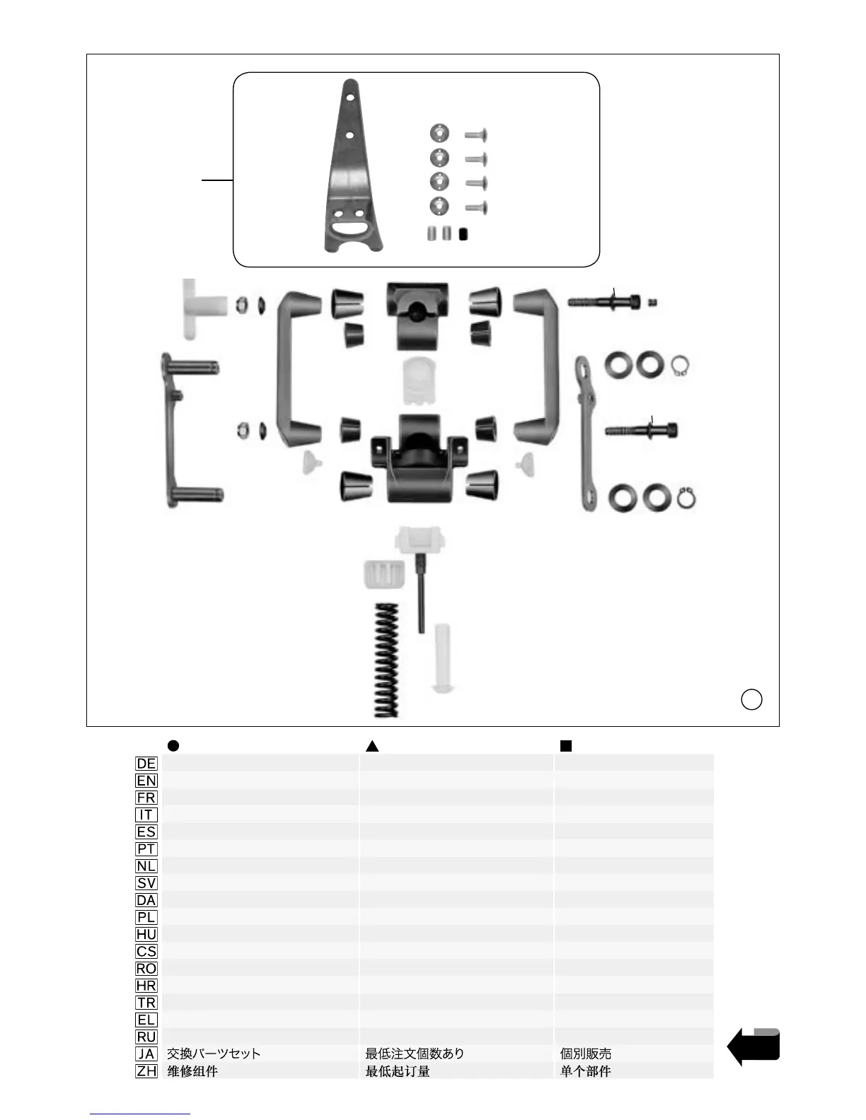 Kit de pièces de rechange Quantité minimum Pièces à l'unité