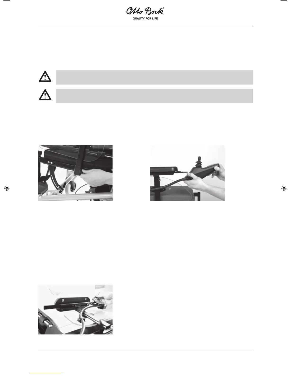 During seat angle adjustments the user must not sit in the wheelchair.