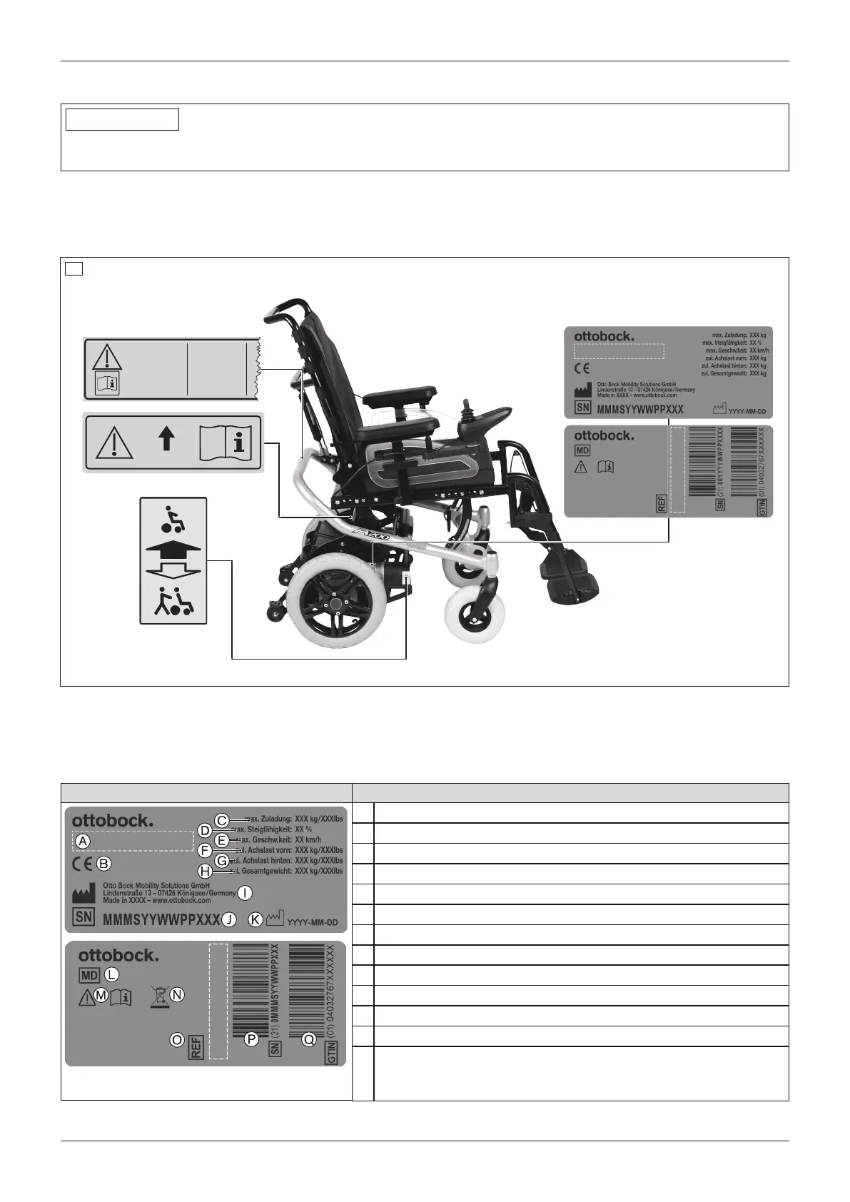 Warning signs and nameplates on the power wheelchair