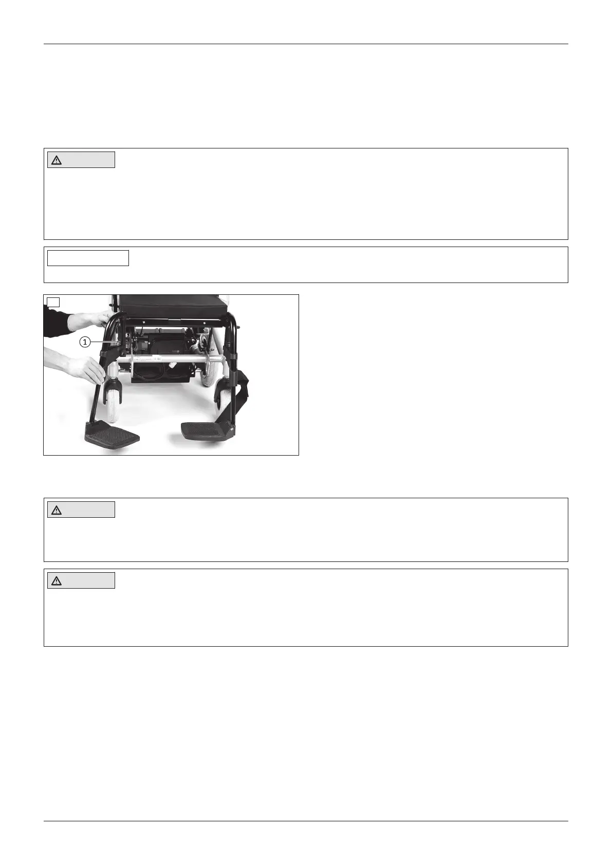 ► Do not reach into the danger area with your fingers when folding the legrest or footplates up or down.