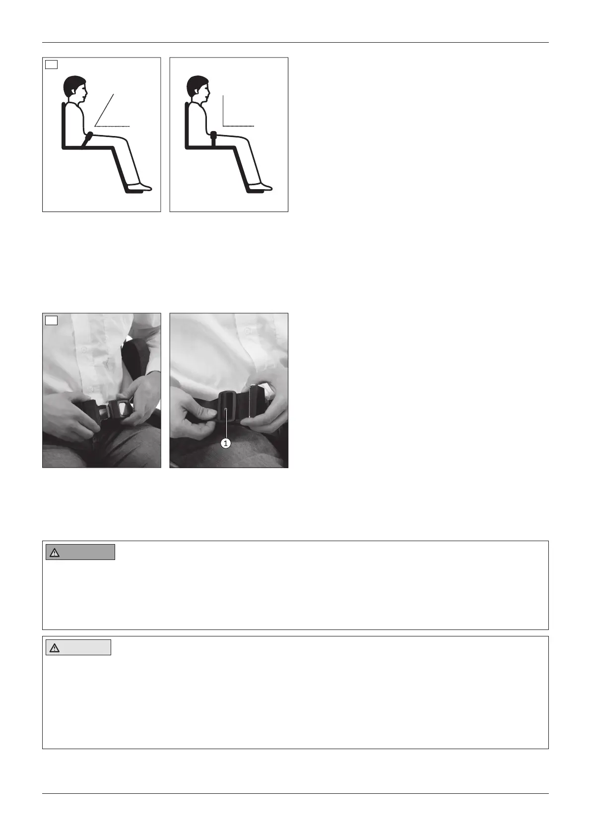 • The lap belt is positioned above the pelvis of the user in the area of the soft part of the stomach.