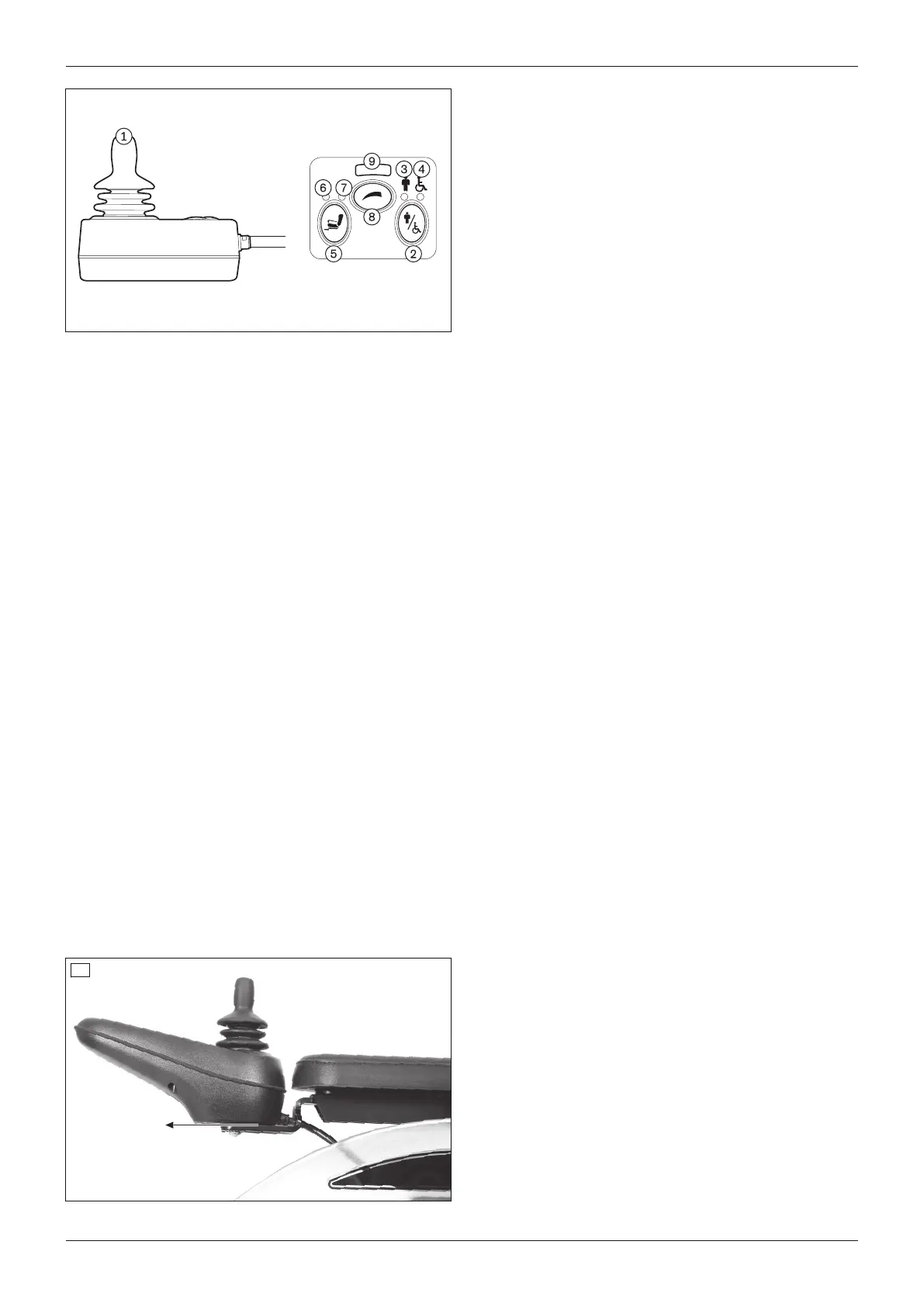 The green LED lights up when the attendant control is activated and the power wheelchair control panel is deactiv