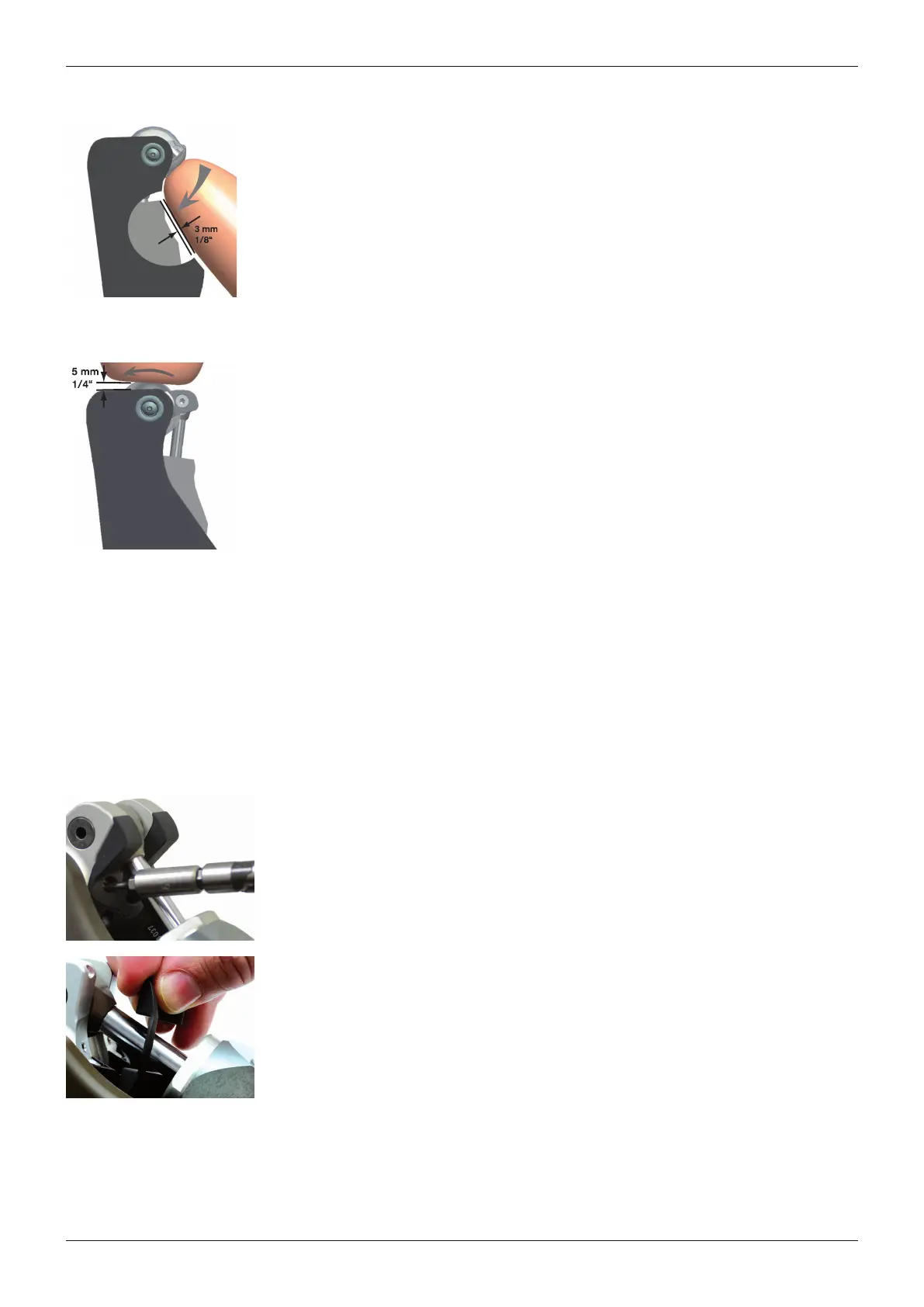 2) Verfügbaren Abstand zwischen Hydraulik und Schaft überprüfen. Dieser muss