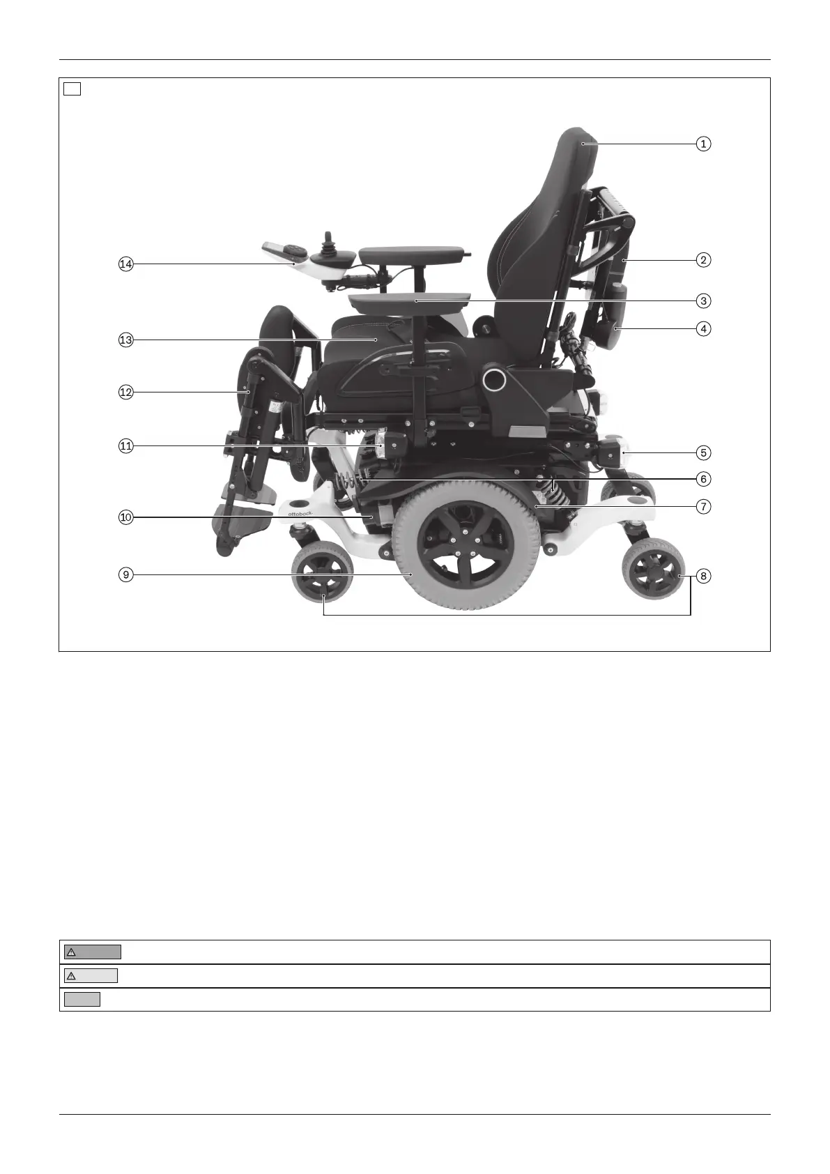 3 Side panel with arm support 10 Motor with brake release