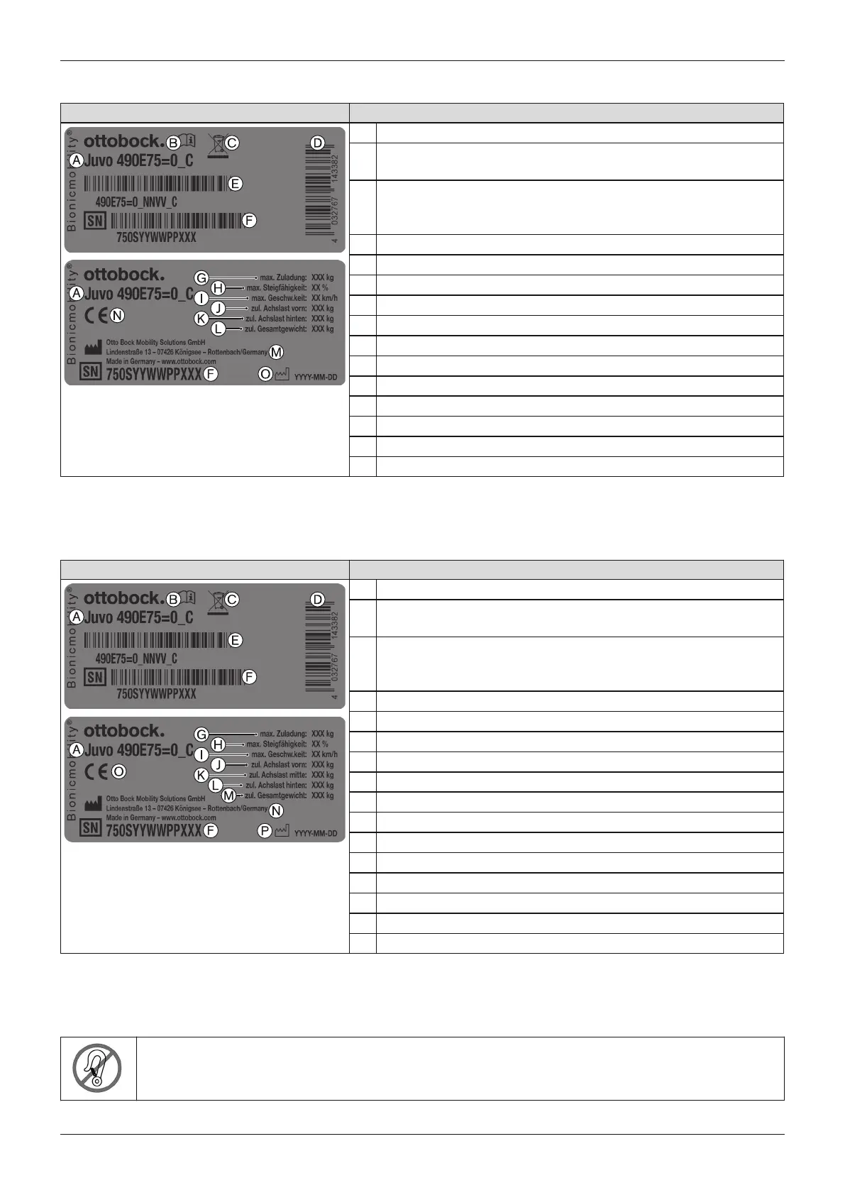 G Maximum load capacity (see section "Technical data")