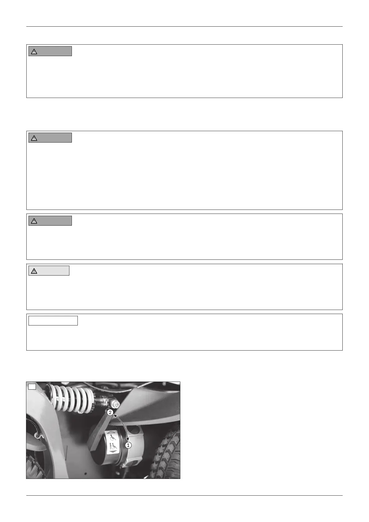 ► Ensure that the wheel lock is engaged each time when parking the power wheelchair.