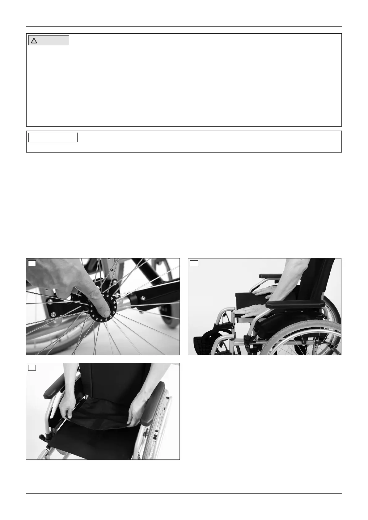 ► After every assembly, check for proper mounting of the drive wheels. The quick-release axles must be
