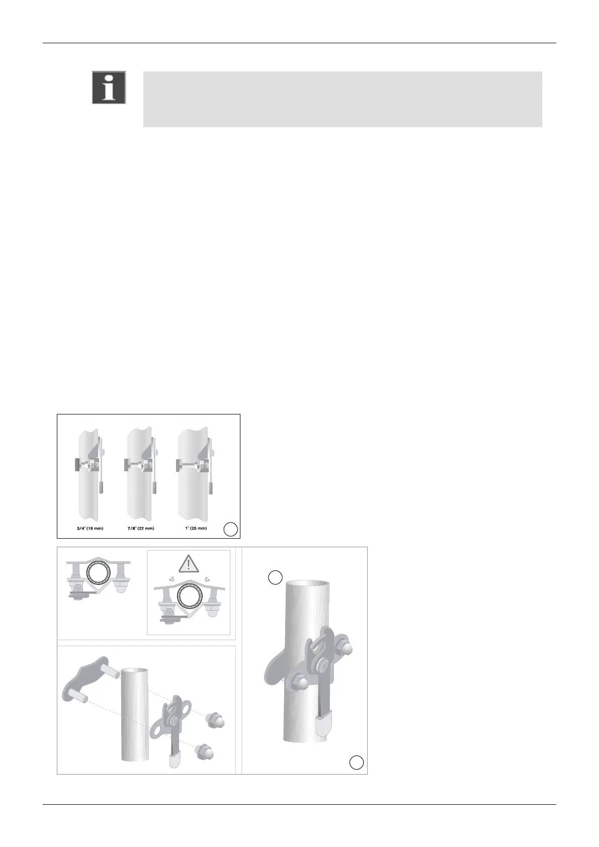 Los adaptadores de montaje son adecuados para tubos de respaldo de 19 mm (3/4"),