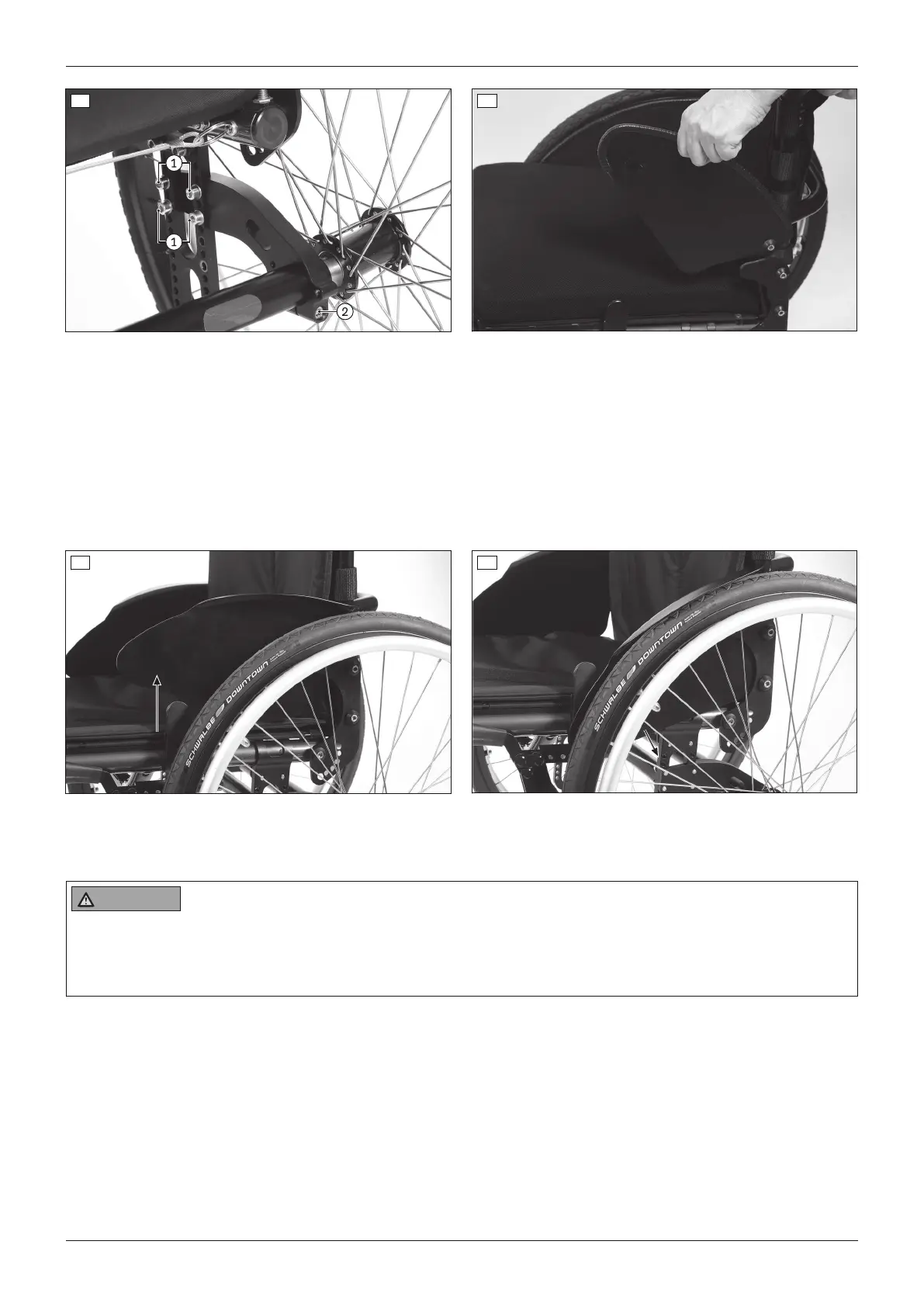 If a wheelbase extension is installed, the side panels can be folded when the user is getting into the wheelchair as