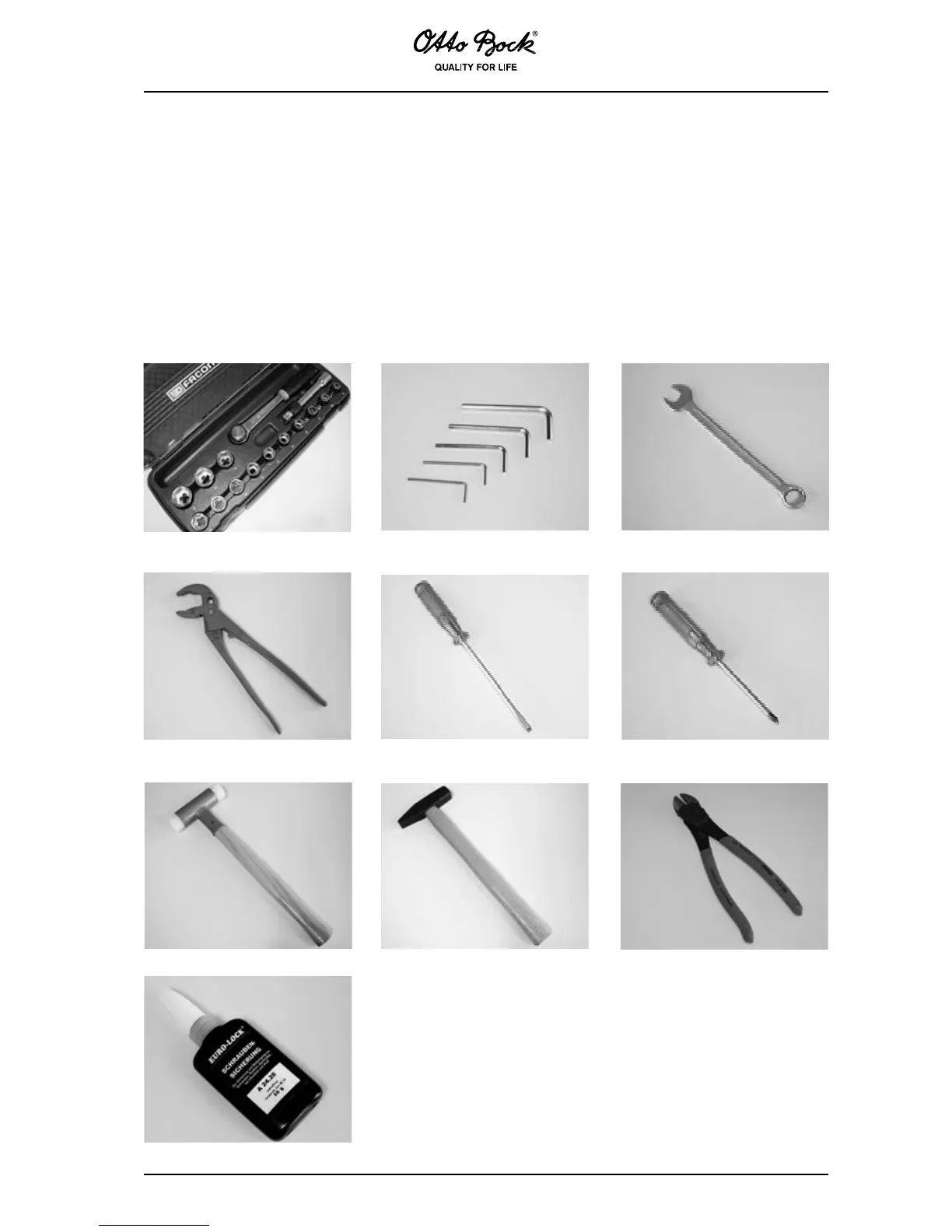 The following list ensures that you use the right implement for every procedure. You will find the maintenance