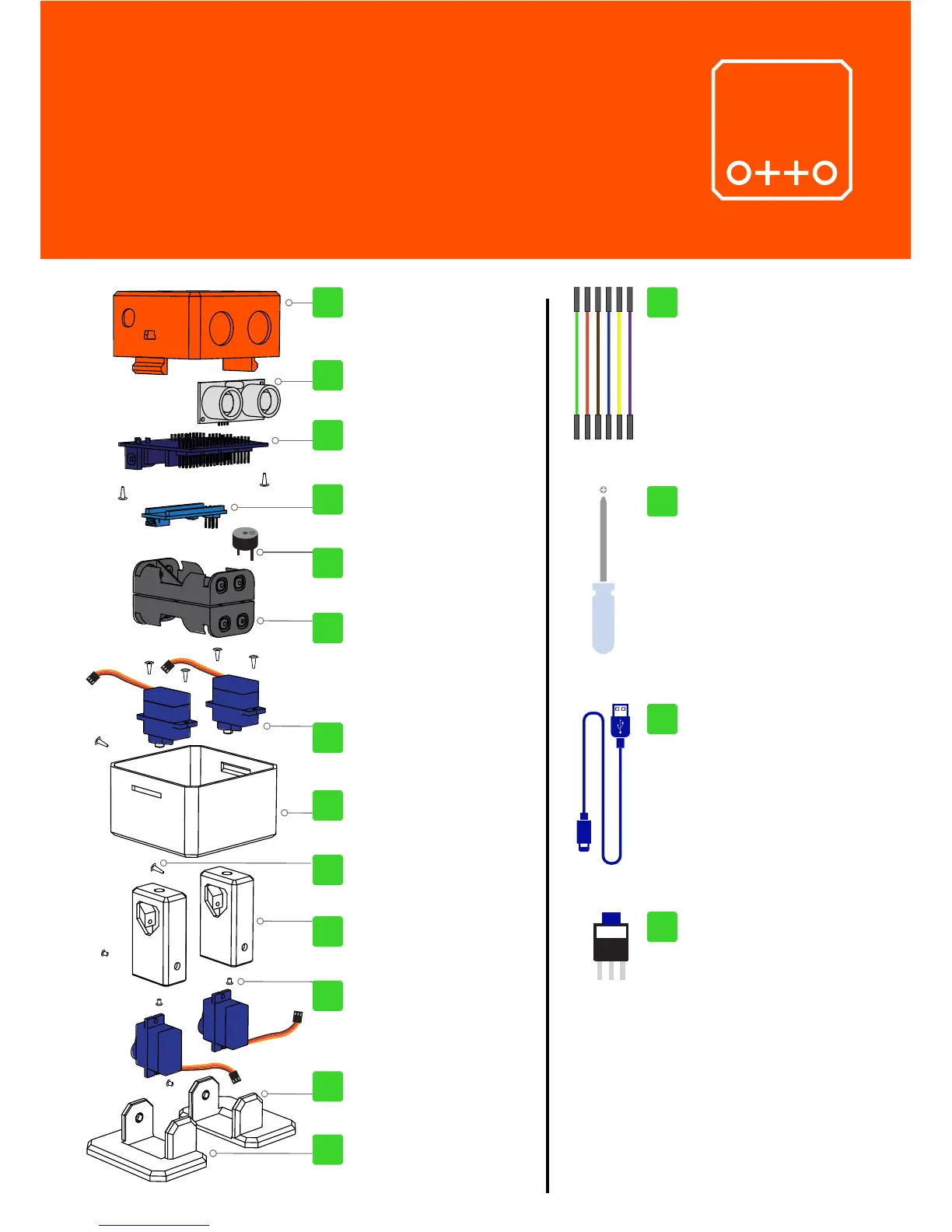 Otto DIY+ - Otto Robot Parts List; Included Components