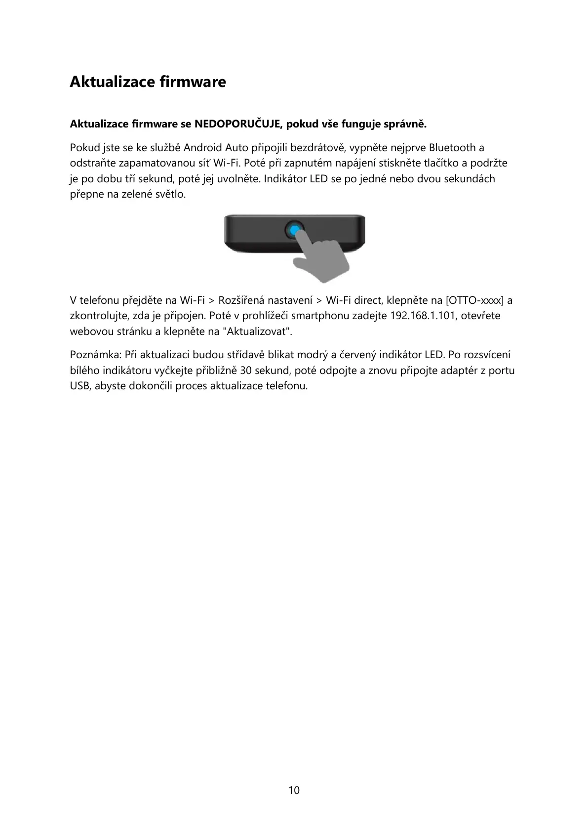 Aktualizace firmware se NEDOPORUČUJE, pokud vše funguje správně.