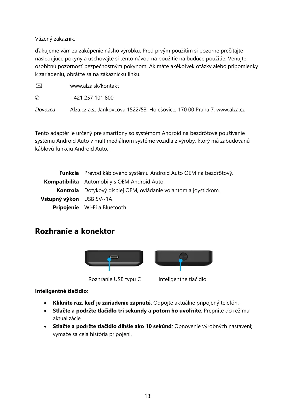 Tento adaptér je určený pre smartfóny so systémom Android na bezdrôtové používanie