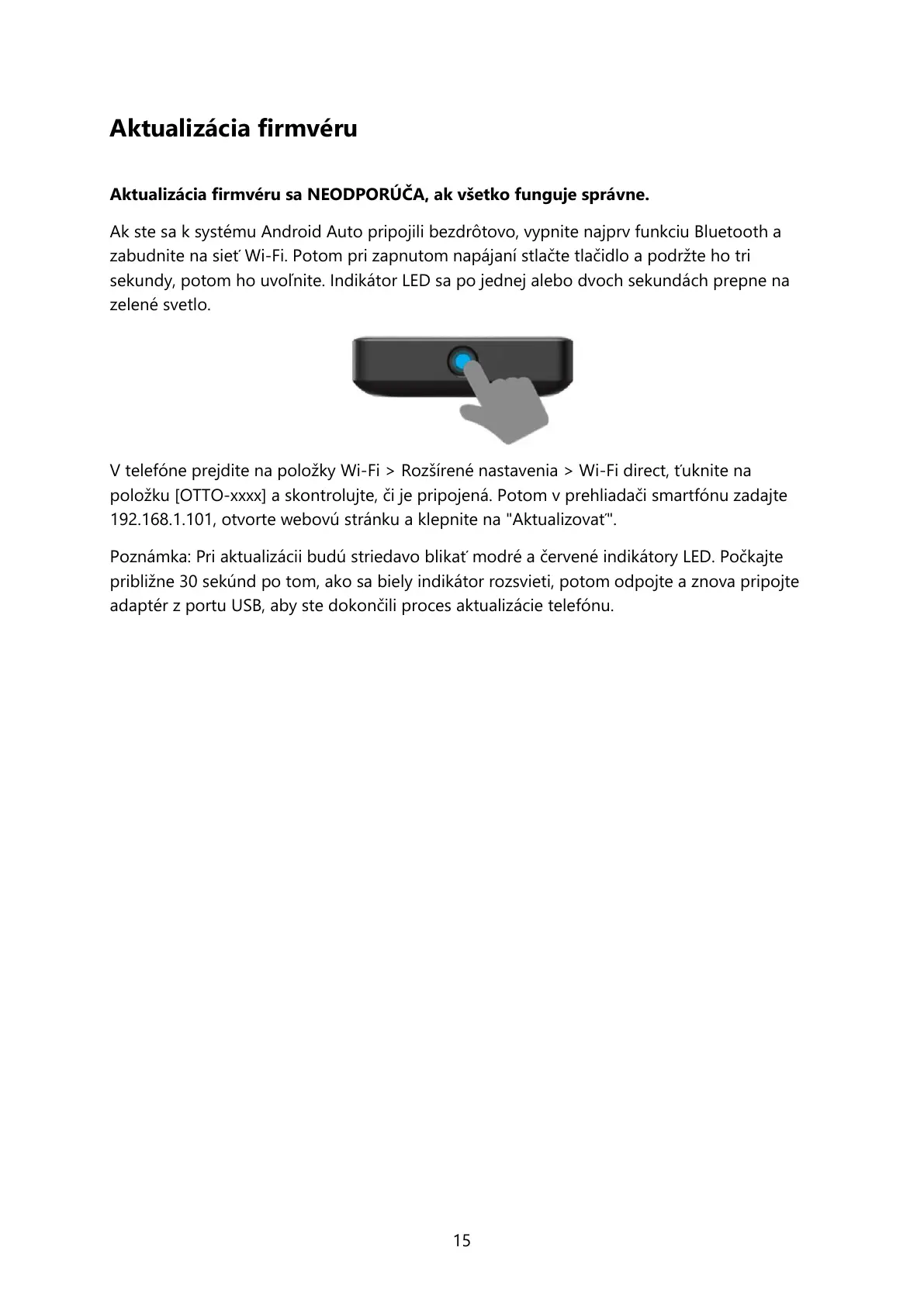 položku [OTTO-xxxx] a skontrolujte, či je pripojená. Potom v prehliadači smartfónu zadajte
