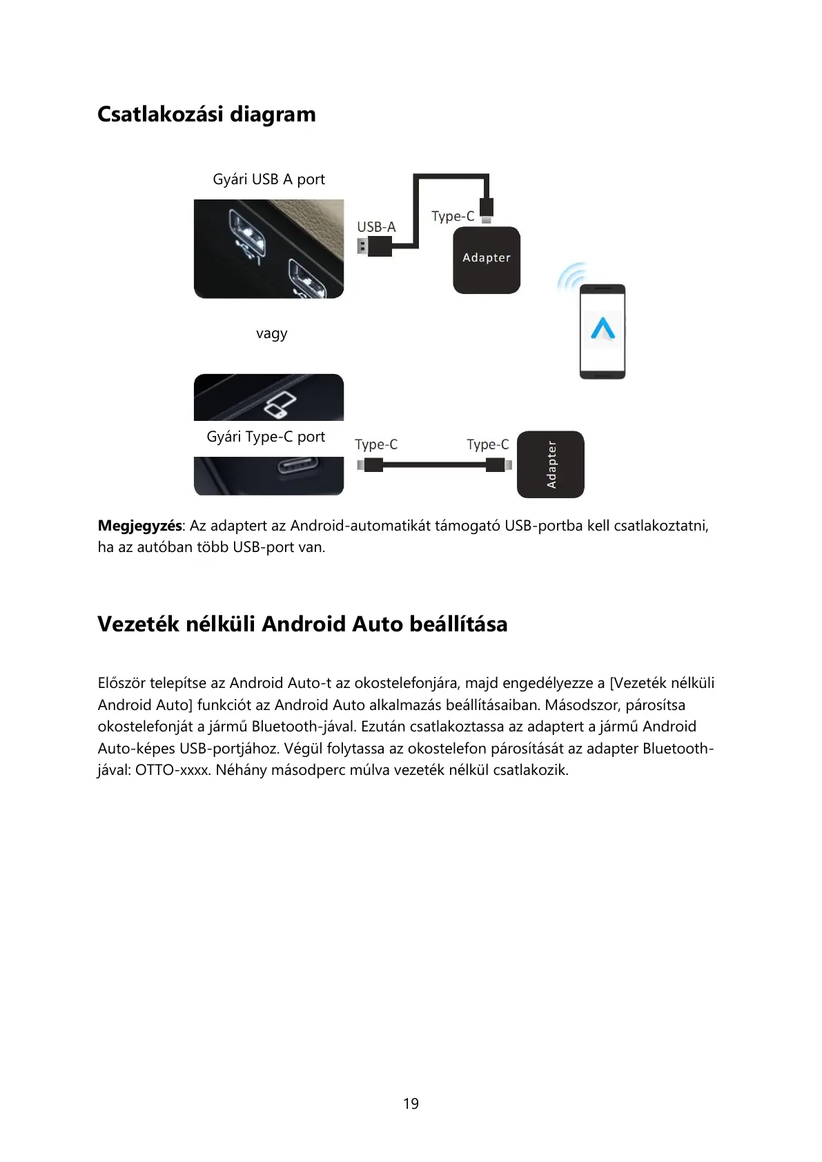 Megjegyzés: Az adaptert az Android-automatikát támogató USB-portba kell csatlakoztatni,
