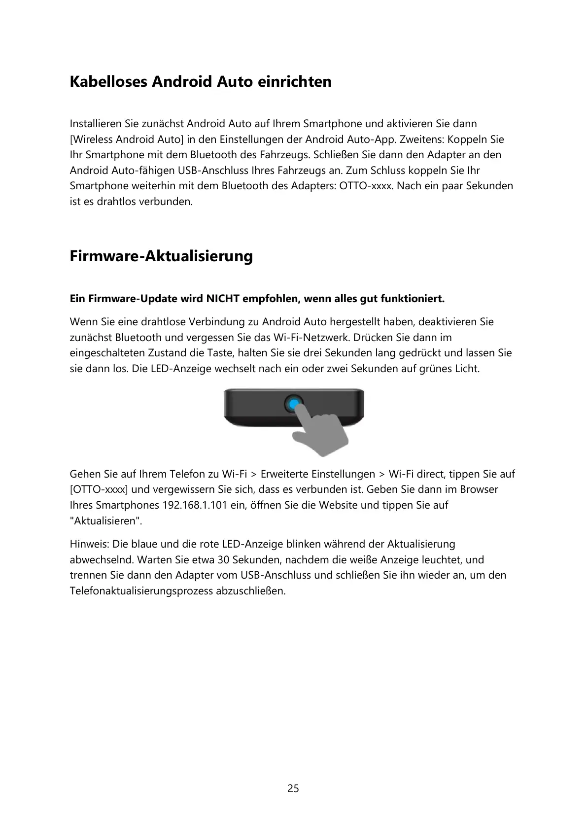 Smartphone weiterhin mit dem Bluetooth des Adapters: OTTO-xxxx. Nach ein paar Sekunden