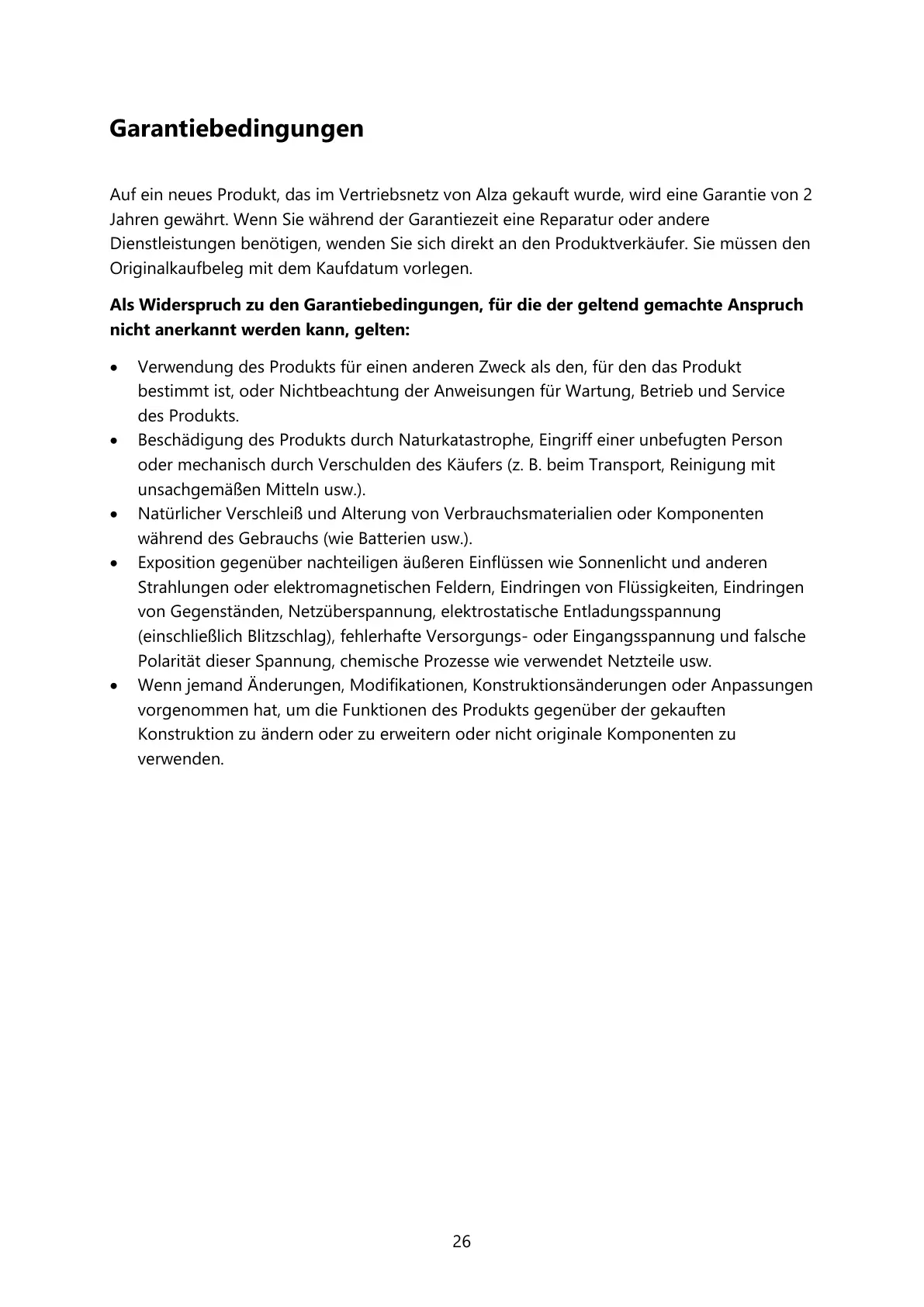 Auf ein neues Produkt, das im Vertriebsnetz von Alza gekauft wurde, wird eine Garantie von 2