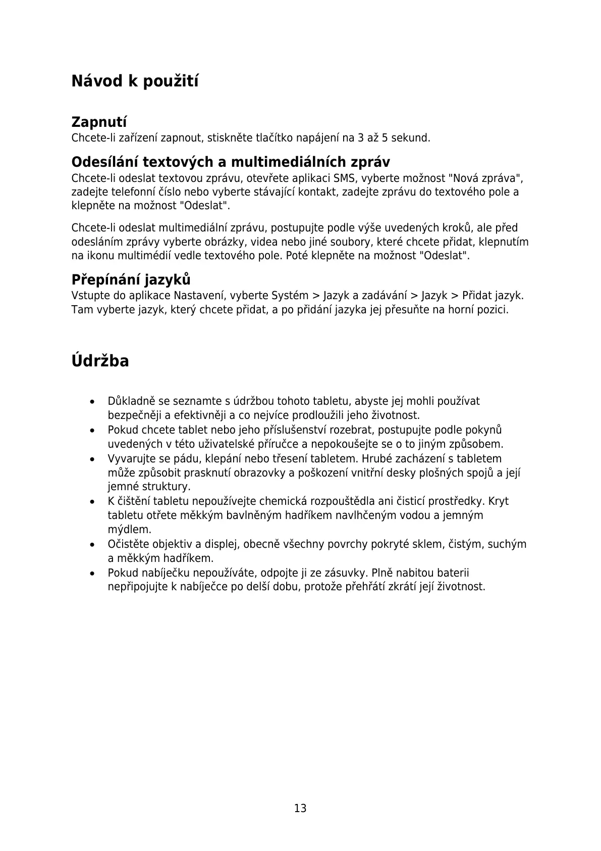 Důkladně se seznamte s údržbou tohoto tabletu, abyste jej mohli používat