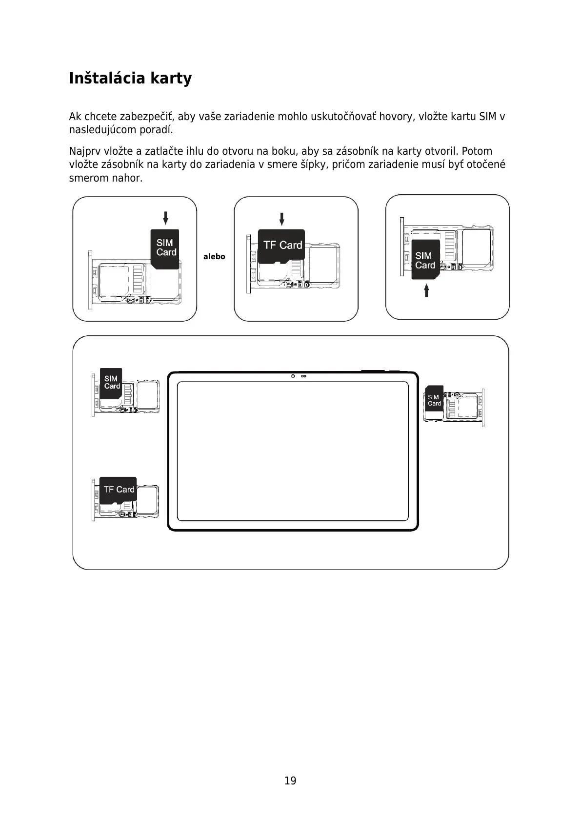 Ak chcete zabezpeč, aby vaše zariadenie mohlo uskutočňovať hovory, vložte kartu SIM v