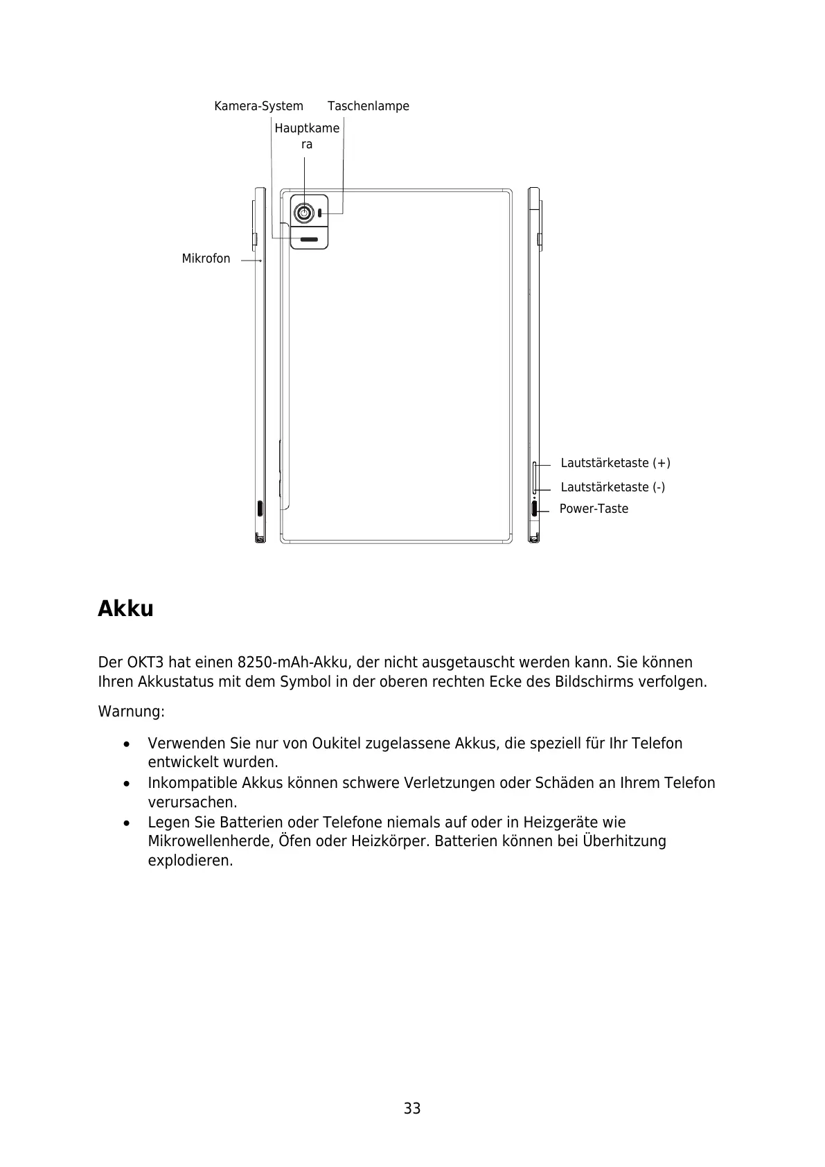 Verwenden Sie nur von Oukitel zugelassene Akkus, die speziell für Ihr Telefon