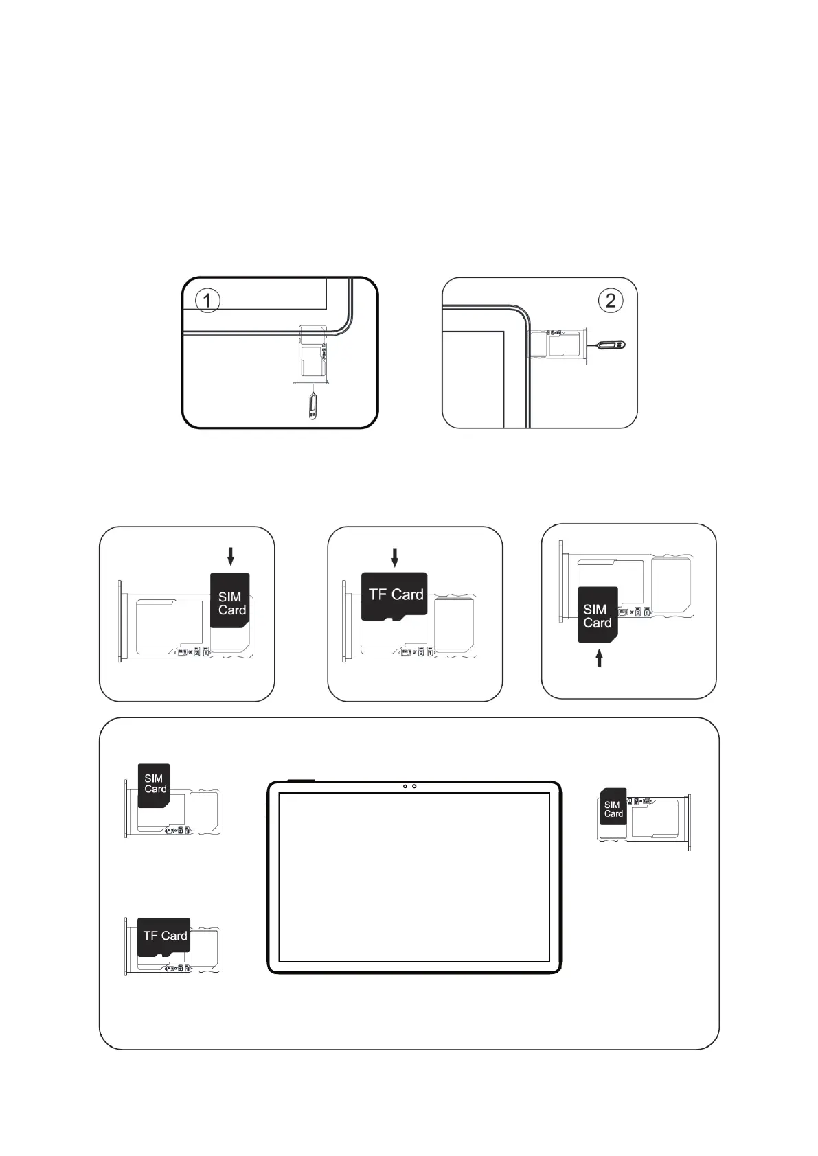 SIM-Karte und eine Speicherkarte mit der Metallseite nach unten ein. Achten Sie darauf,