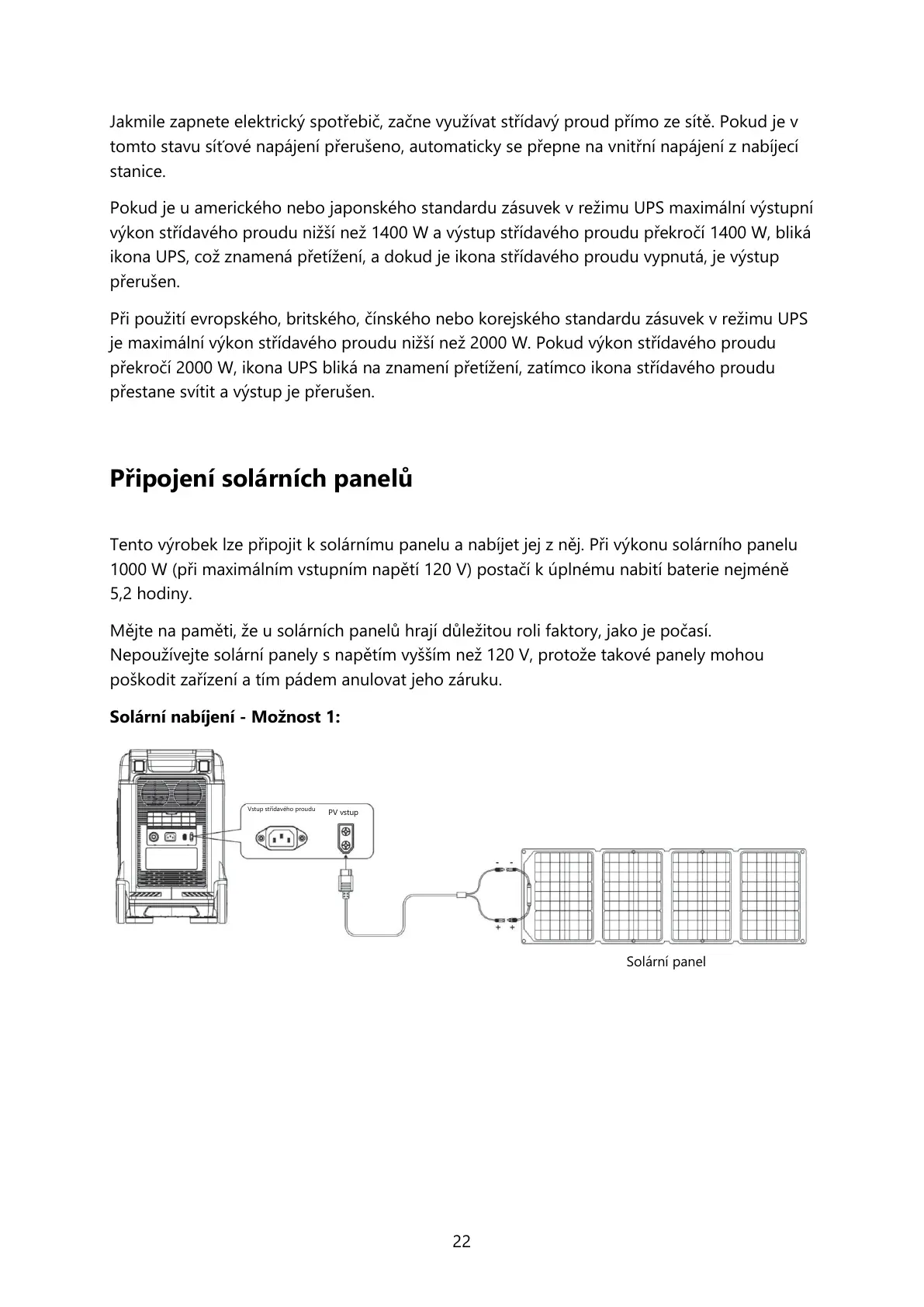 Nepoužívejte solární panely s napětím vyšším než 120 V, protože takové panely mohou
