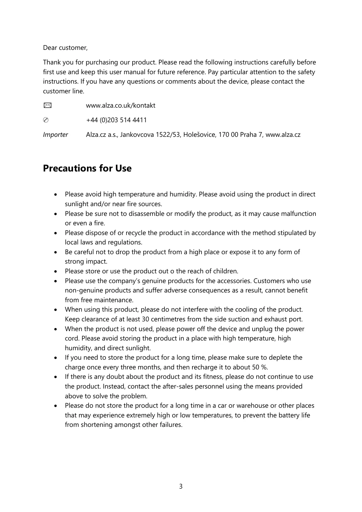 Importer Alza.cz a.s., Jankovcova 1522/53, Holešovice, 170 00 Praha 7, www.alza.cz