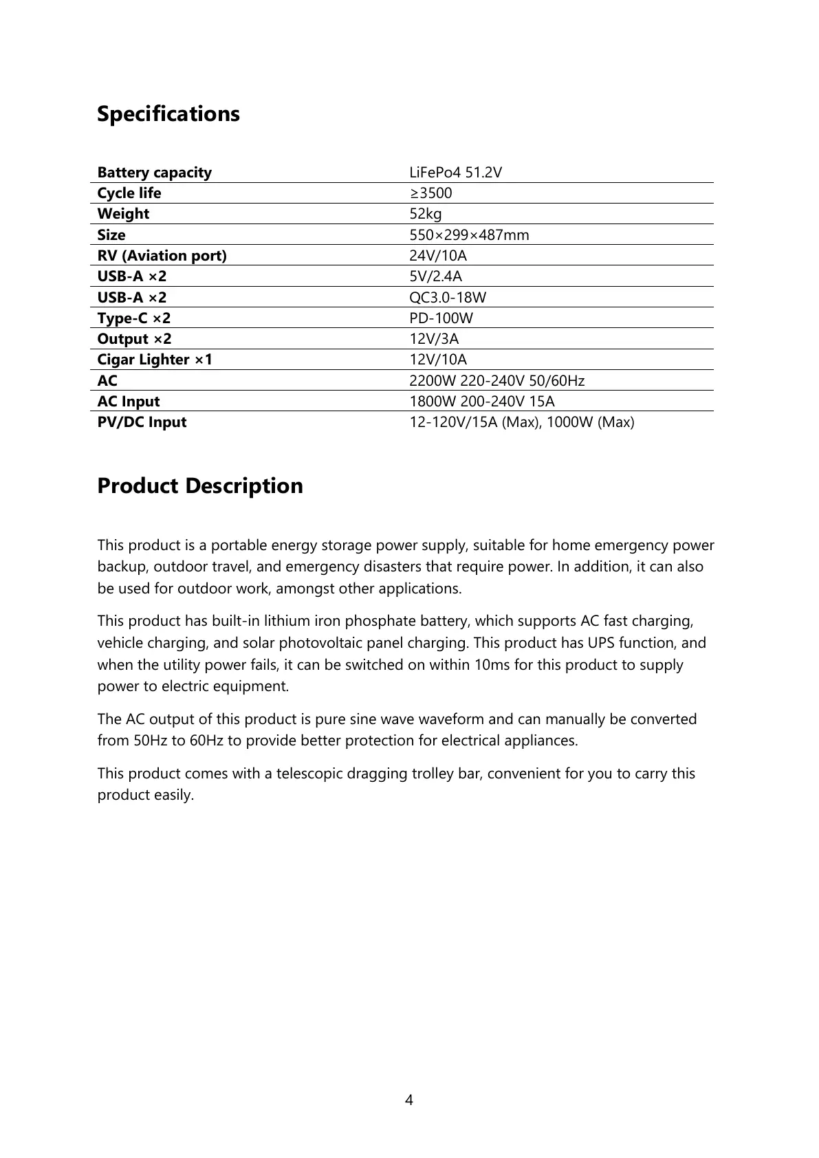 This product has built-in lithium iron phosphate battery, which supports AC fast charging,
