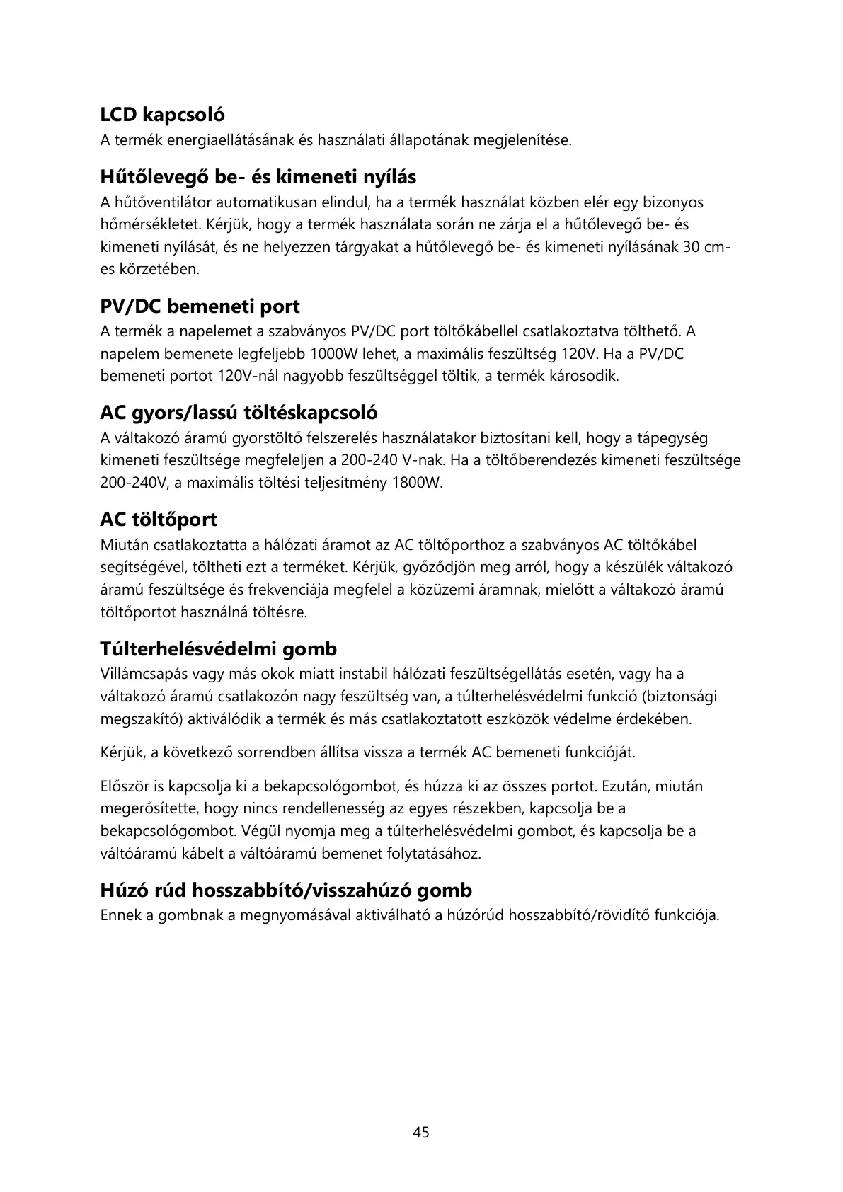 200-240V, a maximális töltési teljesítmény 1800W.