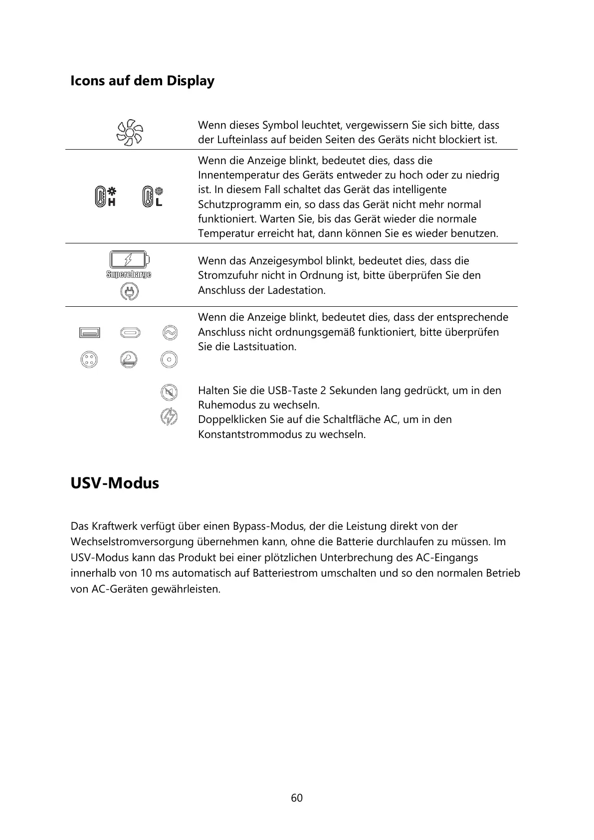 USV-Modus kann das Produkt bei einer plötzlichen Unterbrechung des AC-Eingangs