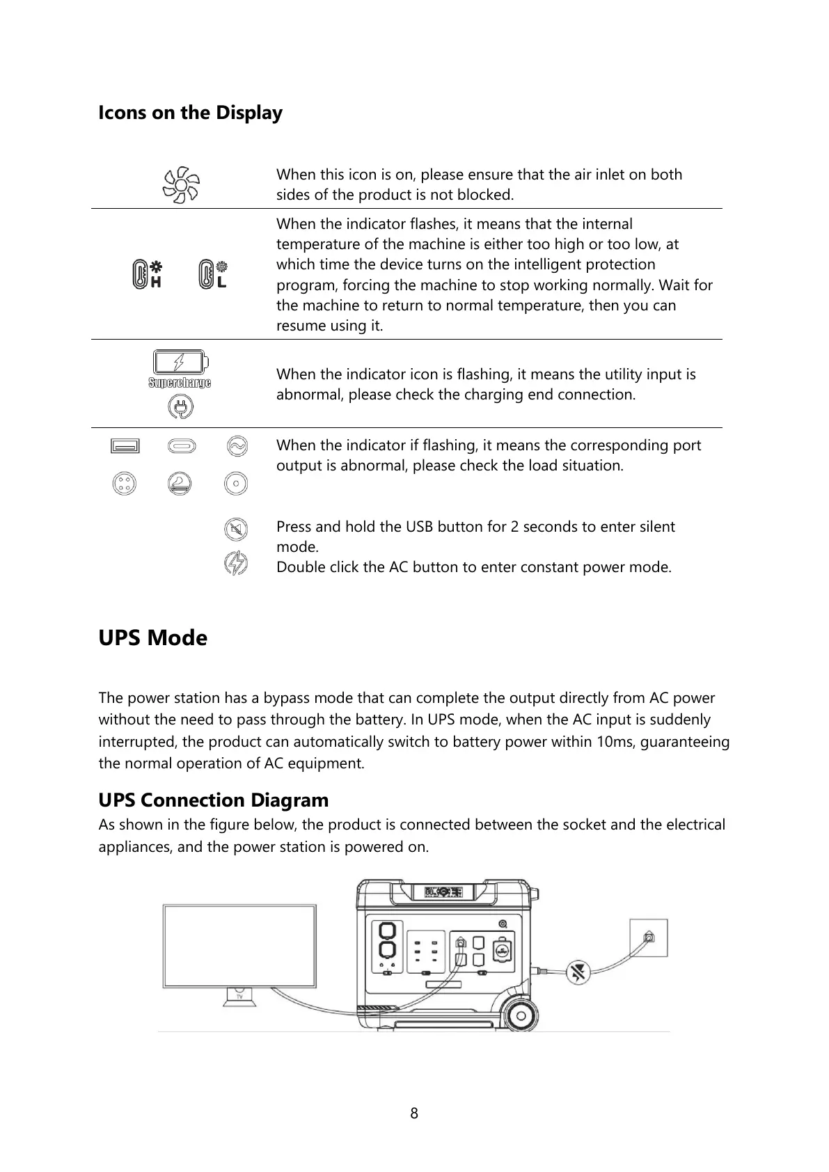 without the need to pass through the battery. In UPS mode, when the AC input is suddenly