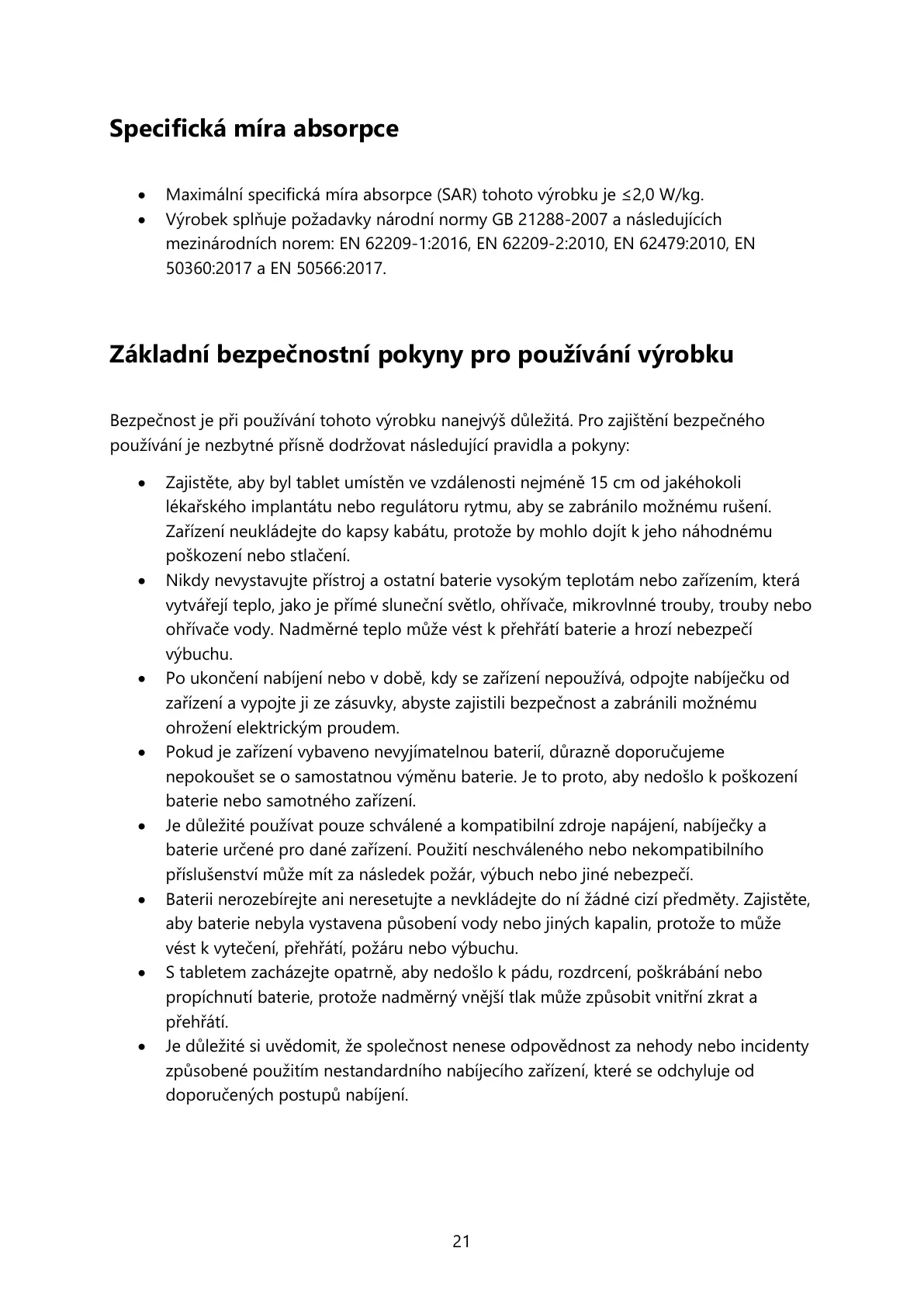 mezinárodních norem: EN 62209-1:2016, EN 62209-2:2010, EN 62479:2010, EN