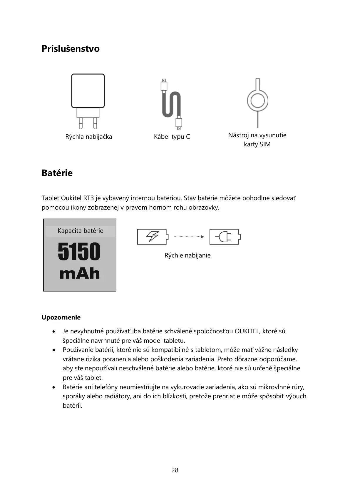 Tablet Oukitel RT3 je vybavený internou batériou. Stav batérie môžete pohodlne sledovať