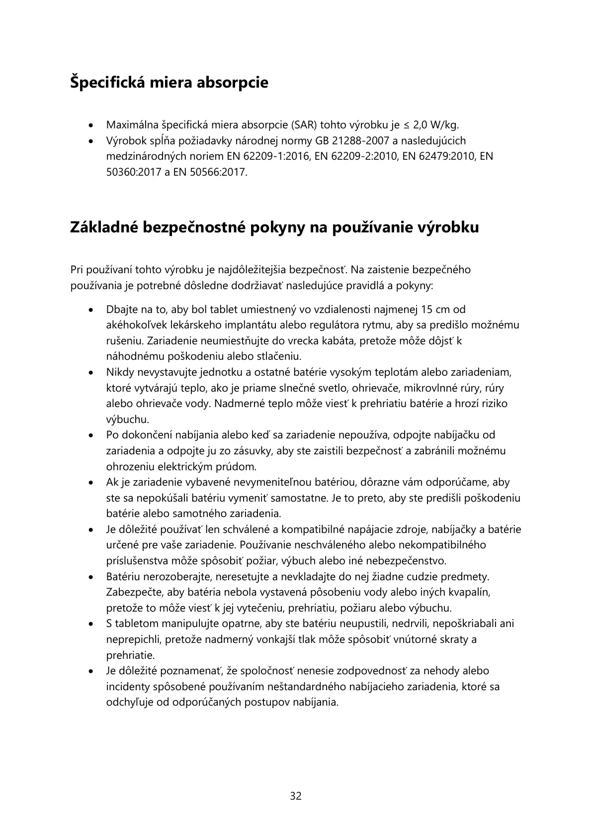 Maximálna špecifická miera absorpcie (SAR) tohto výrobku je ≤ 2,0 W/kg.