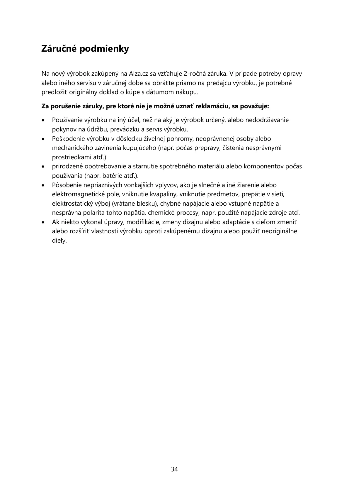 Za porušenie záruky, pre ktoré nie je možné uznať reklamáciu, sa považuje:
