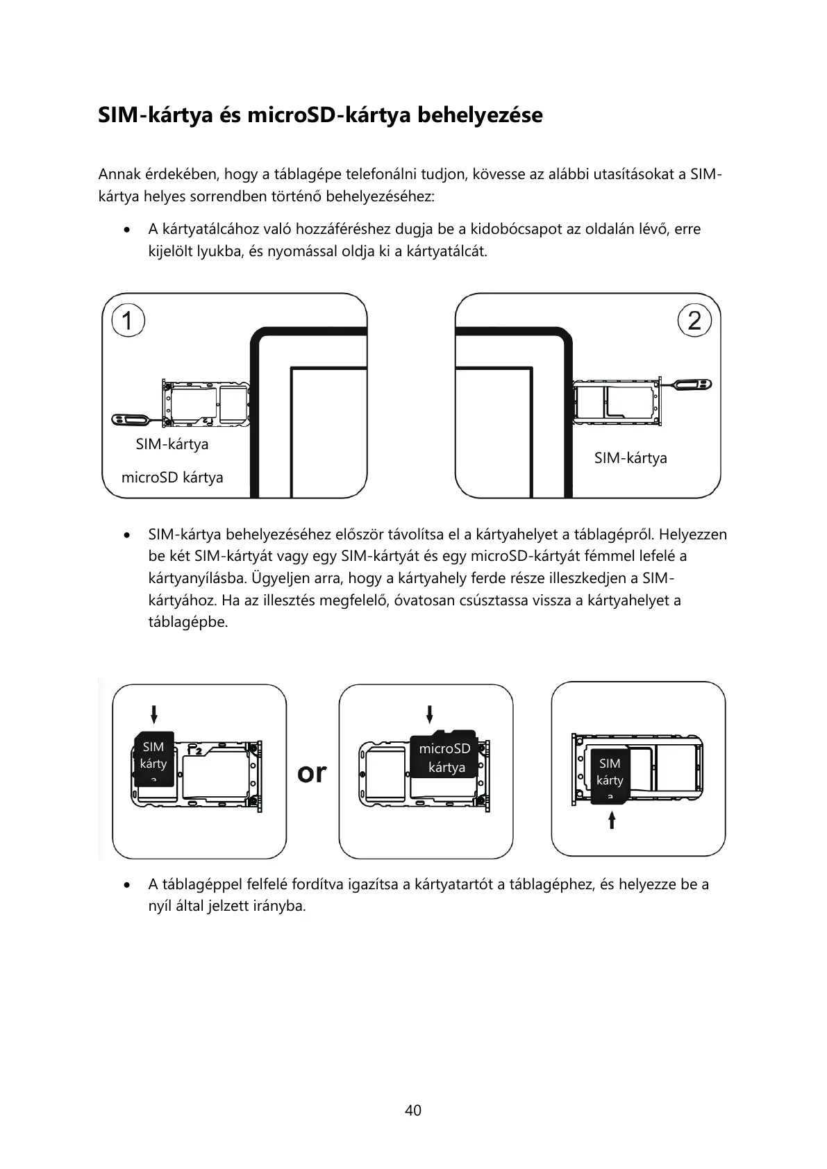 SIM-kártya behelyezéséhez először távolítsa el a kártyahelyet a táblagépről. Helyezzen