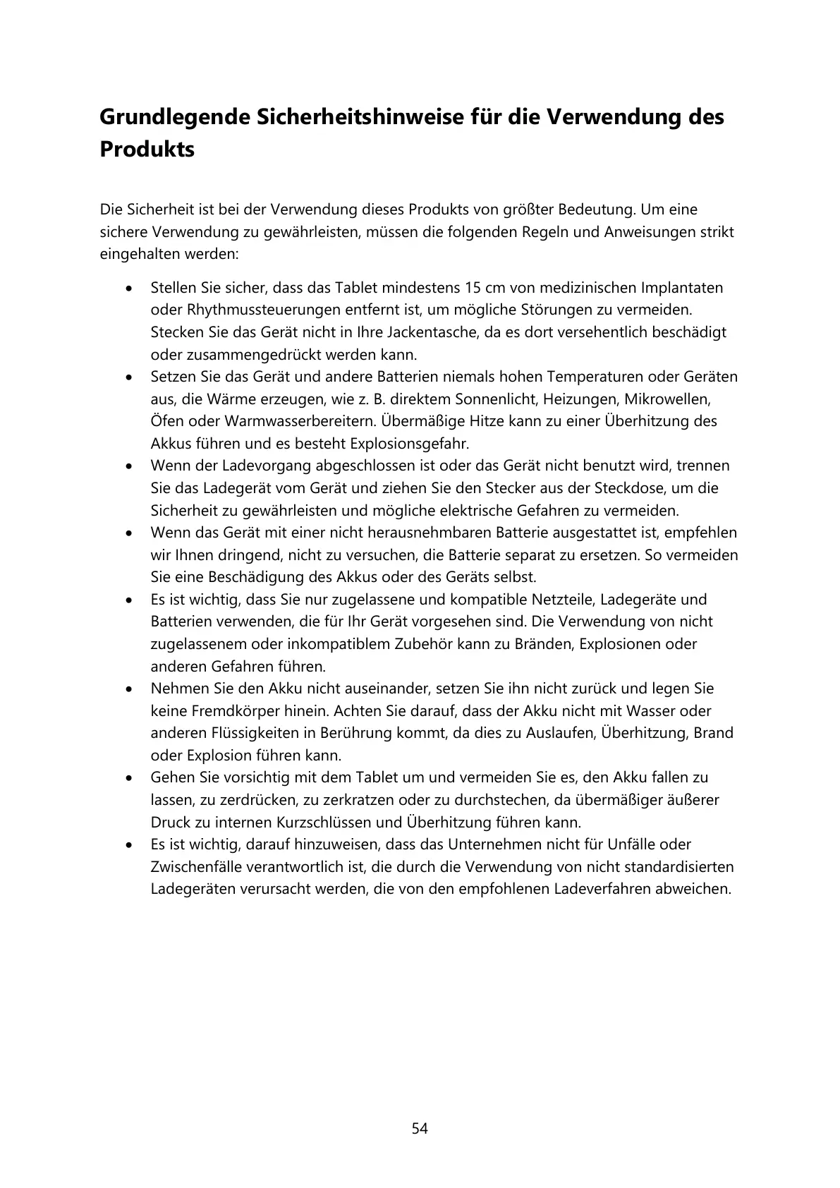 Gehen Sie vorsichtig mit dem Tablet um und vermeiden Sie es, den Akku fallen zu