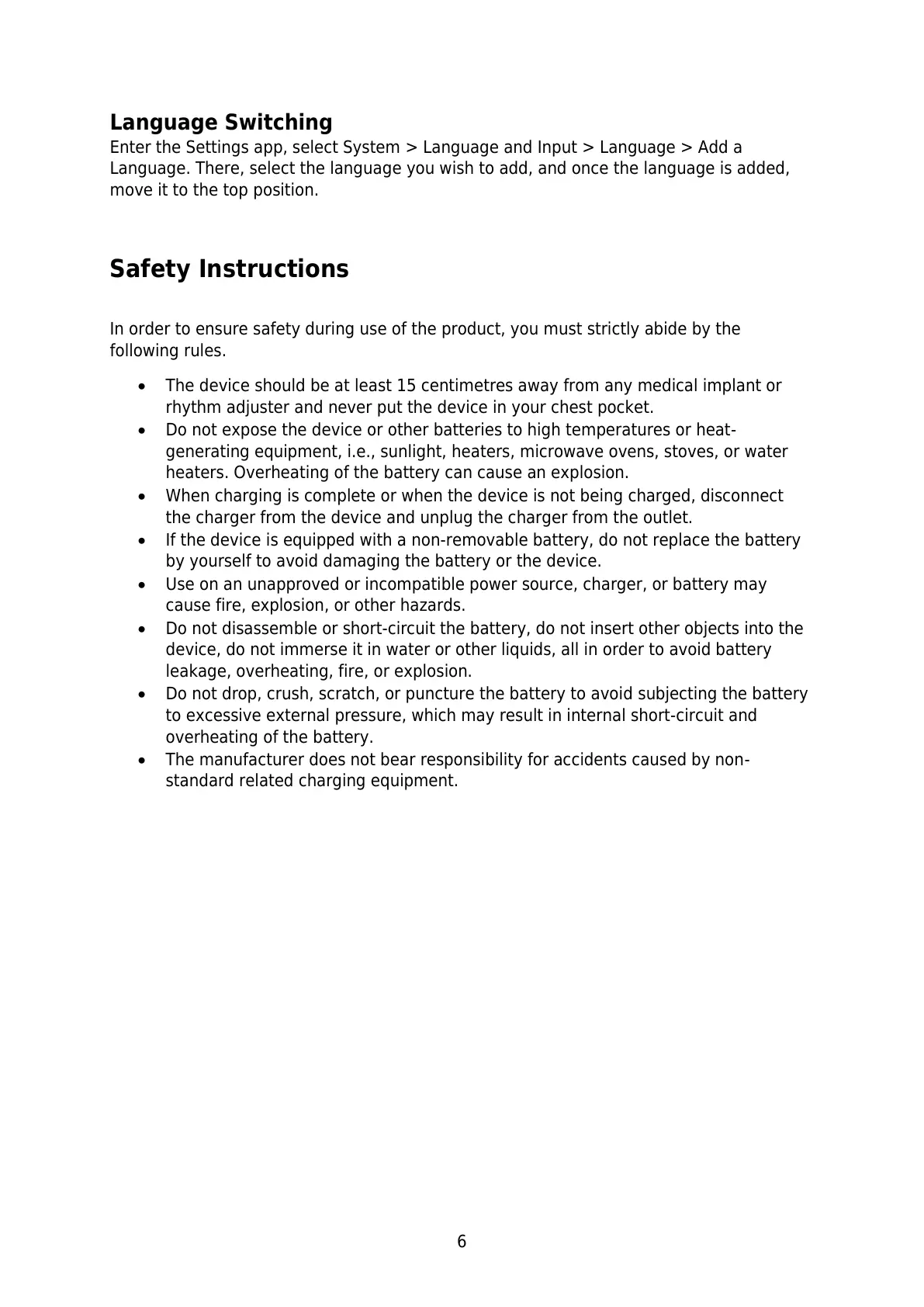 Do not drop, crush, scratch, or puncture the battery to avoid subjecting the battery