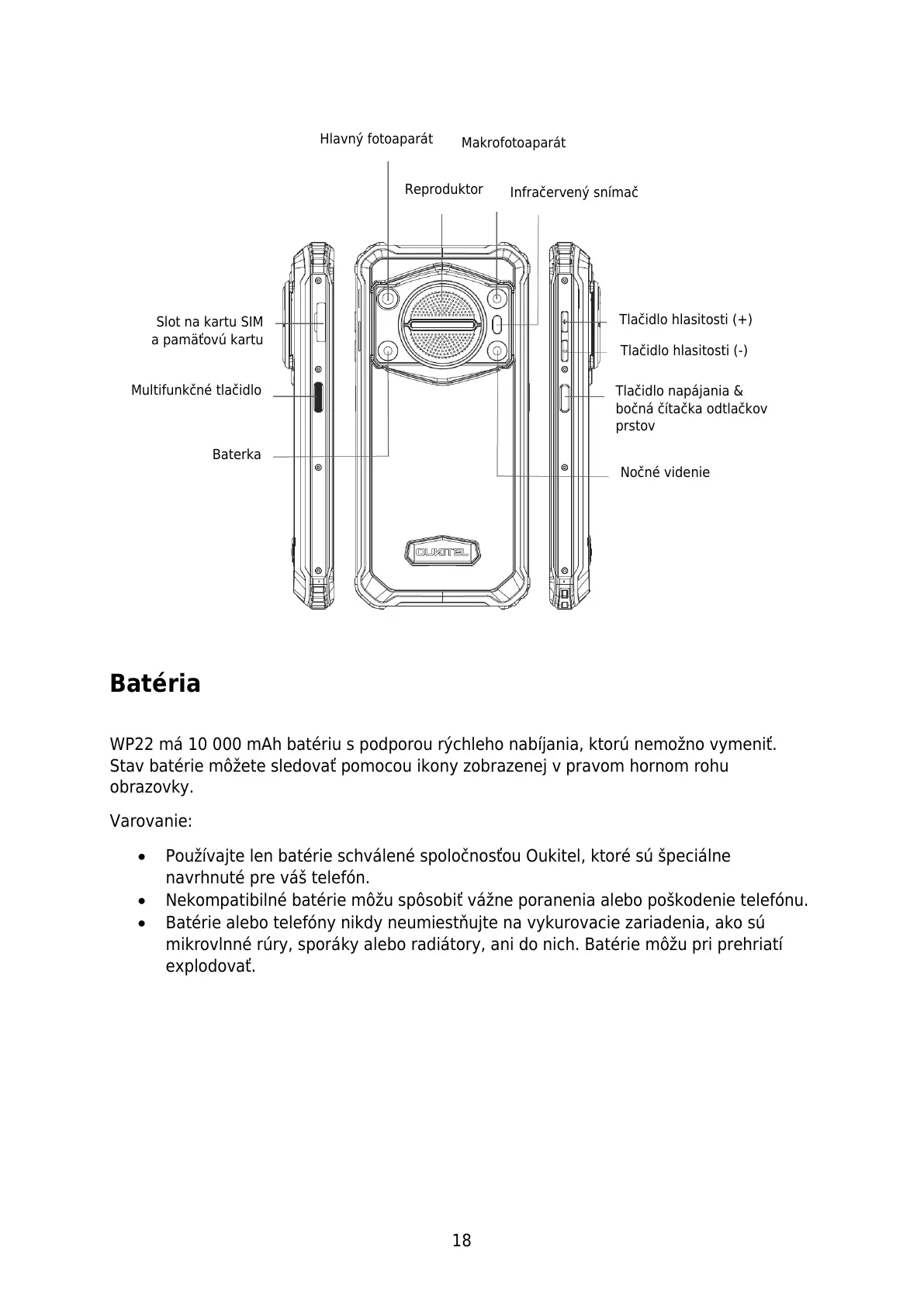 Používajte len batérie schválené spoločnosťou Oukitel, ktoré sú špeciálne