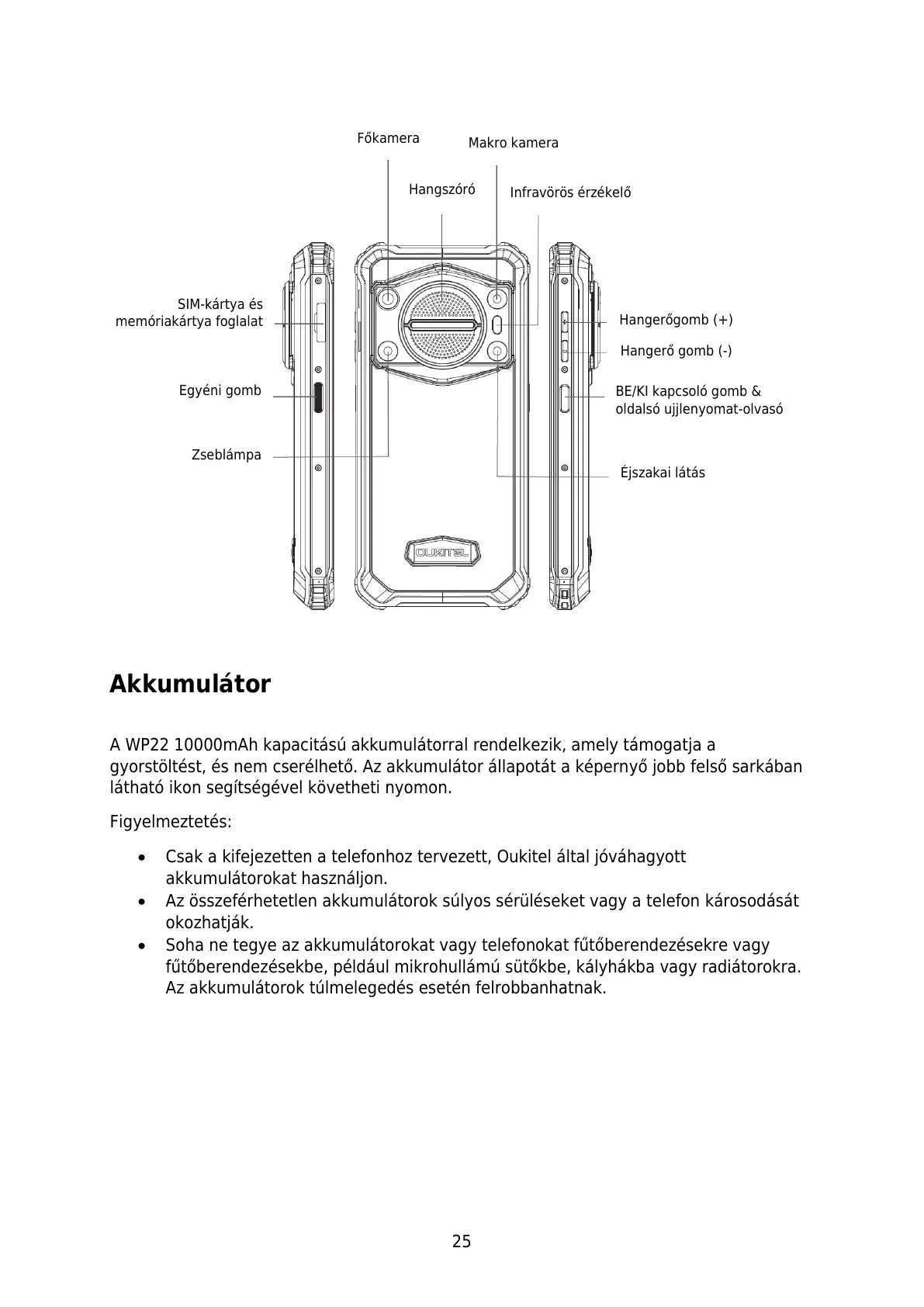 Csak a kifejezetten a telefonhoz tervezett, Oukitel által jóváhagyott
