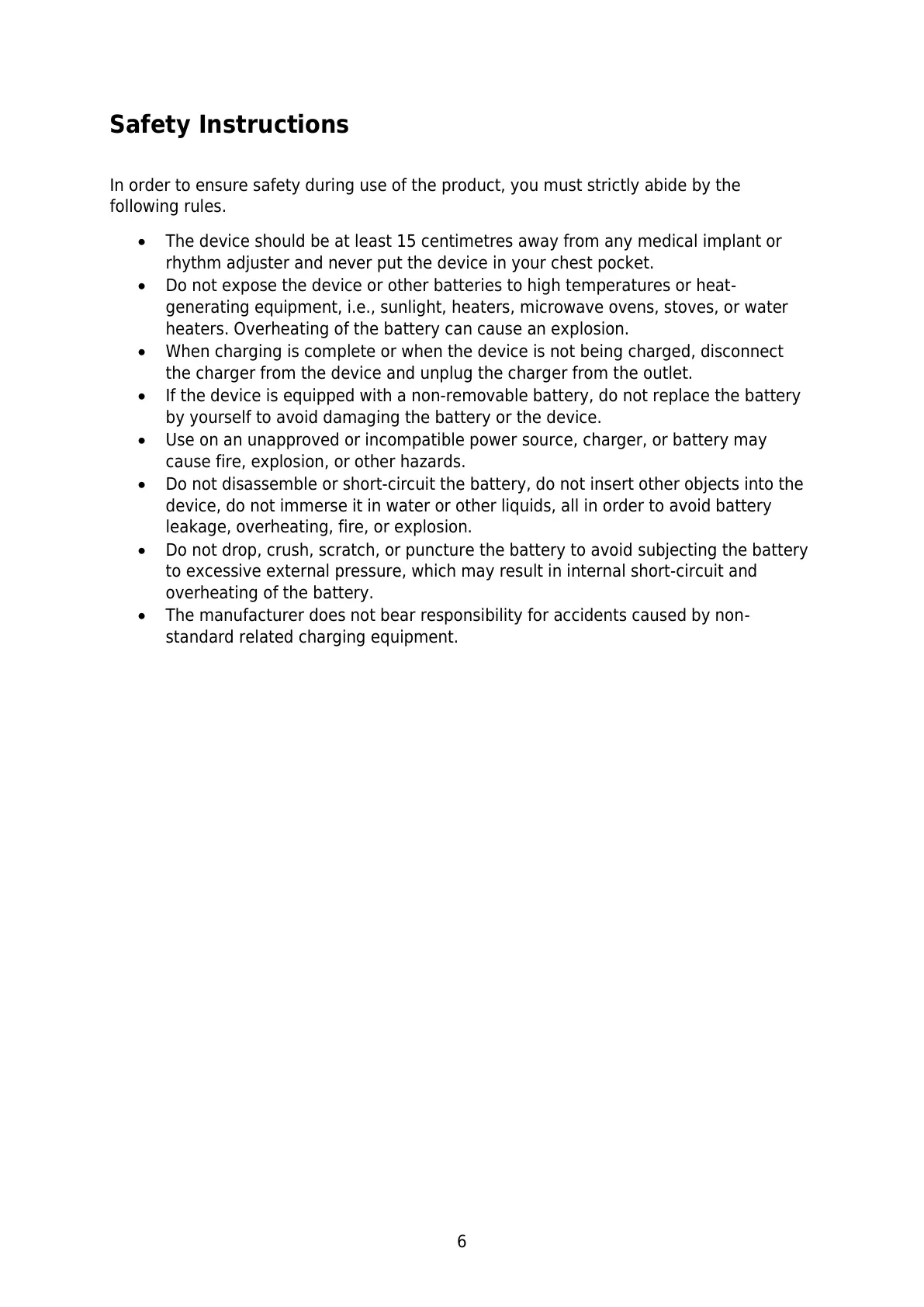 Do not drop, crush, scratch, or puncture the battery to avoid subjecting the battery