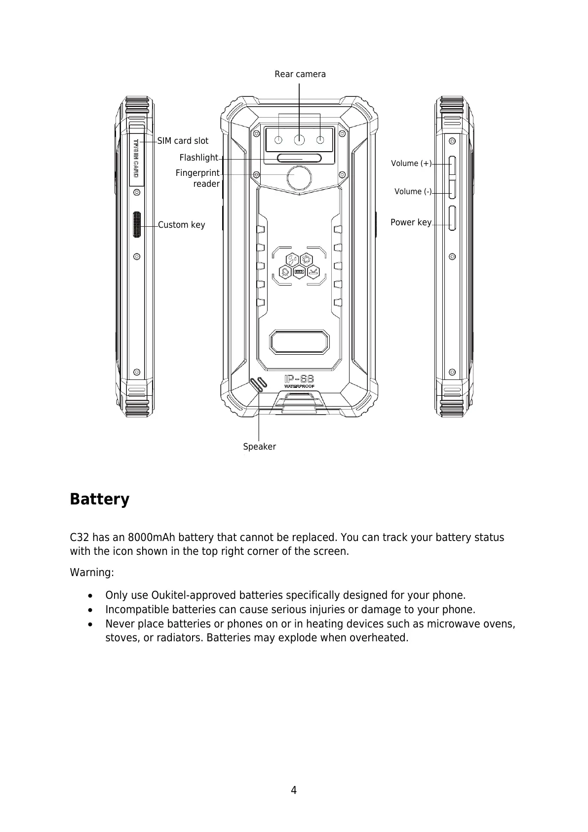 Only use Oukitel-approved batteries specifically designed for your phone.