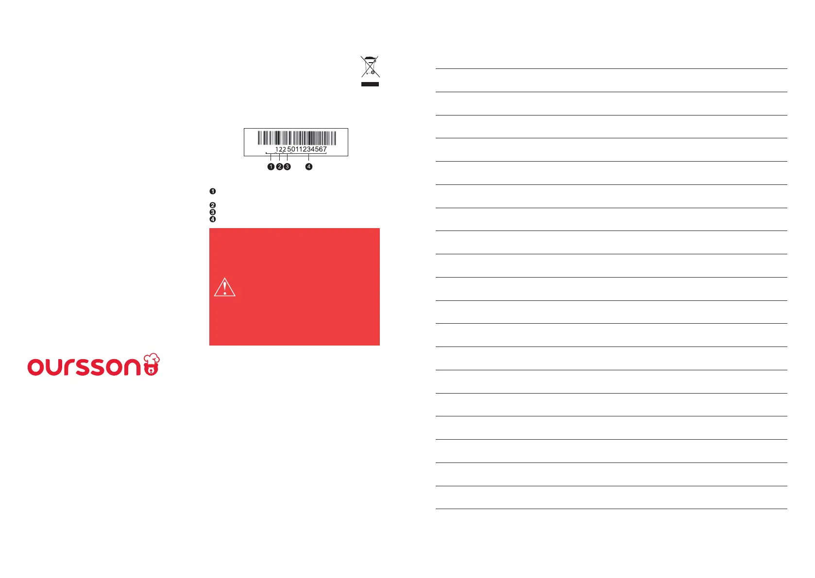 гарячої лінії OURSSON AG (безкоштовні дзвінки зі стаціонарних телефонів): Україна: 0 800 50 5512