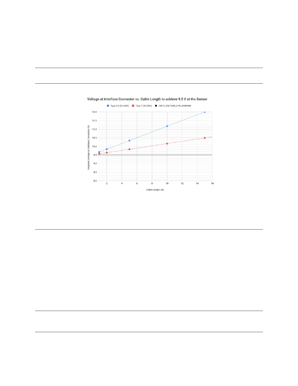 appropriate input voltage to the sensor connector for your desired cable length. The values on the