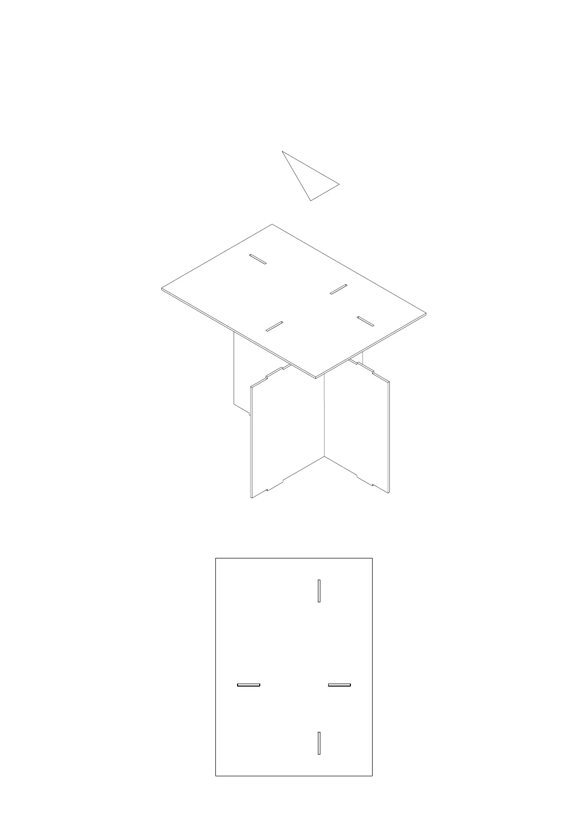 die Zapfen auf Höhe der Ausfräsungen sind. Stecke nun die Tischplatte formschlüssig auf die