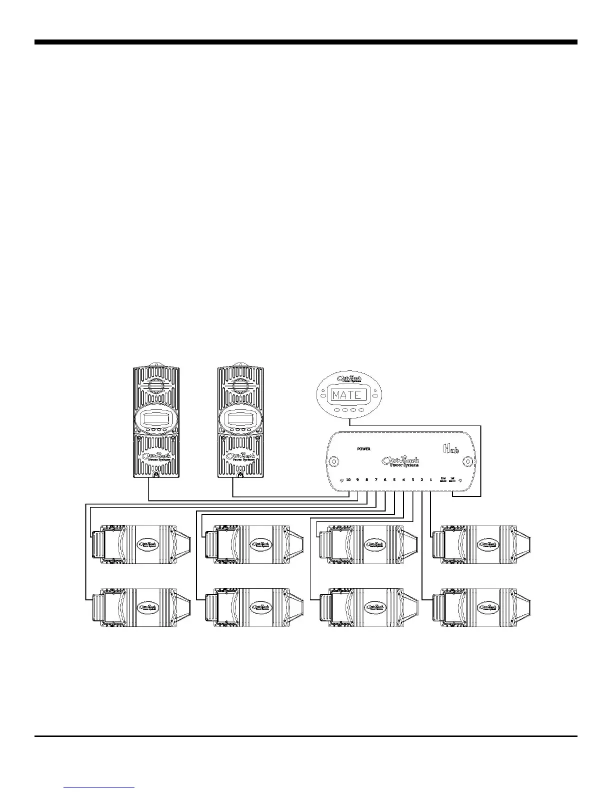The HUB communication manager allows the MATE to control and monitor a maximum of ten OutBack products. Currently the HUB