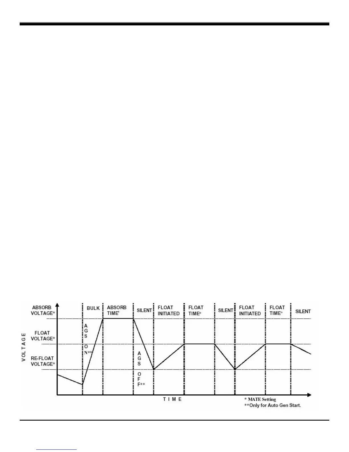 ‘Absorb’, ‘Float’, and ‘Equalize’ voltage set points as well as the ‘Absorb Time Period’ should be programmed into the FX through the
