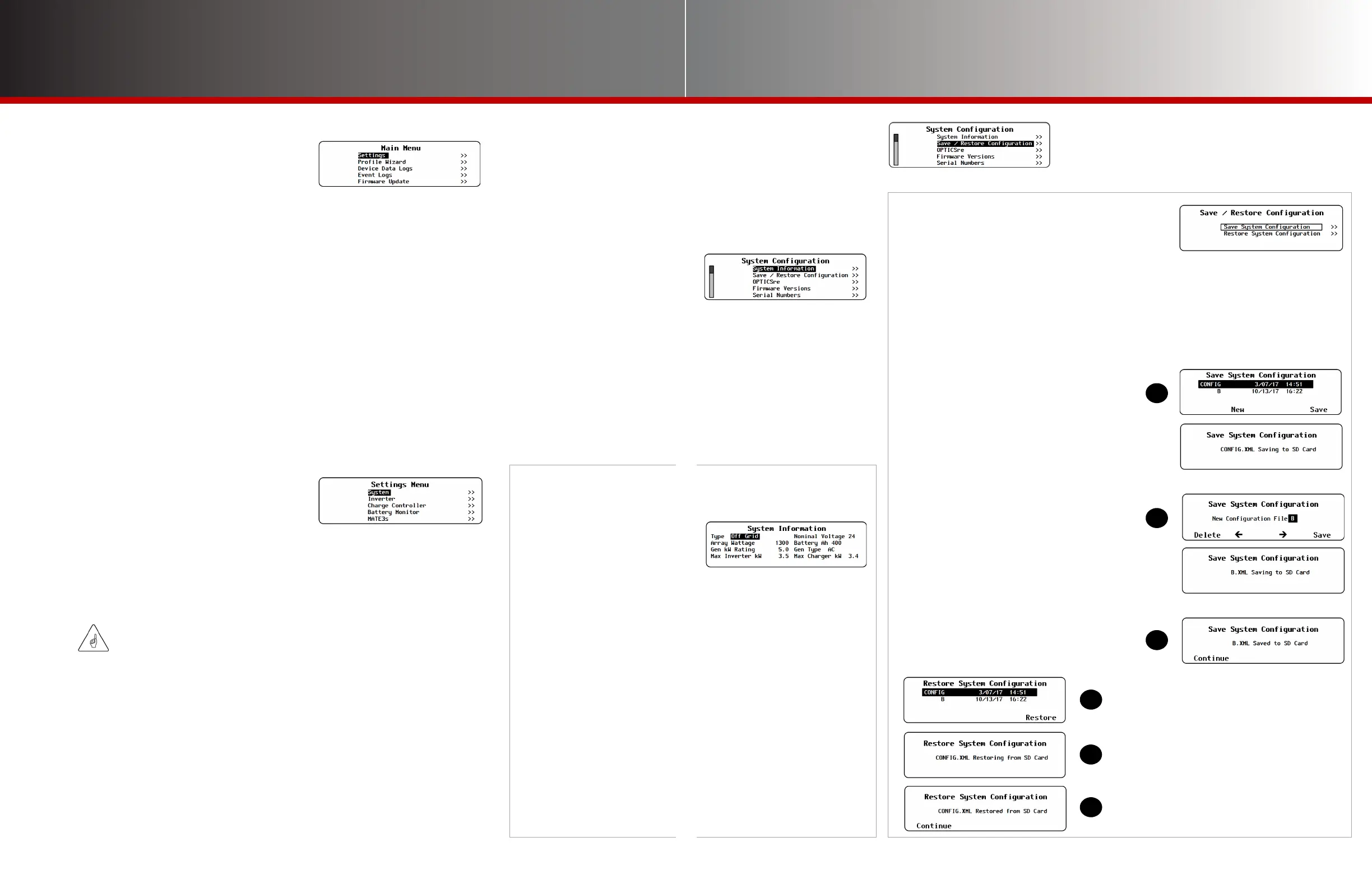 ○ Firmware Updates (see page 51 and the MATE3s Overview Guide)