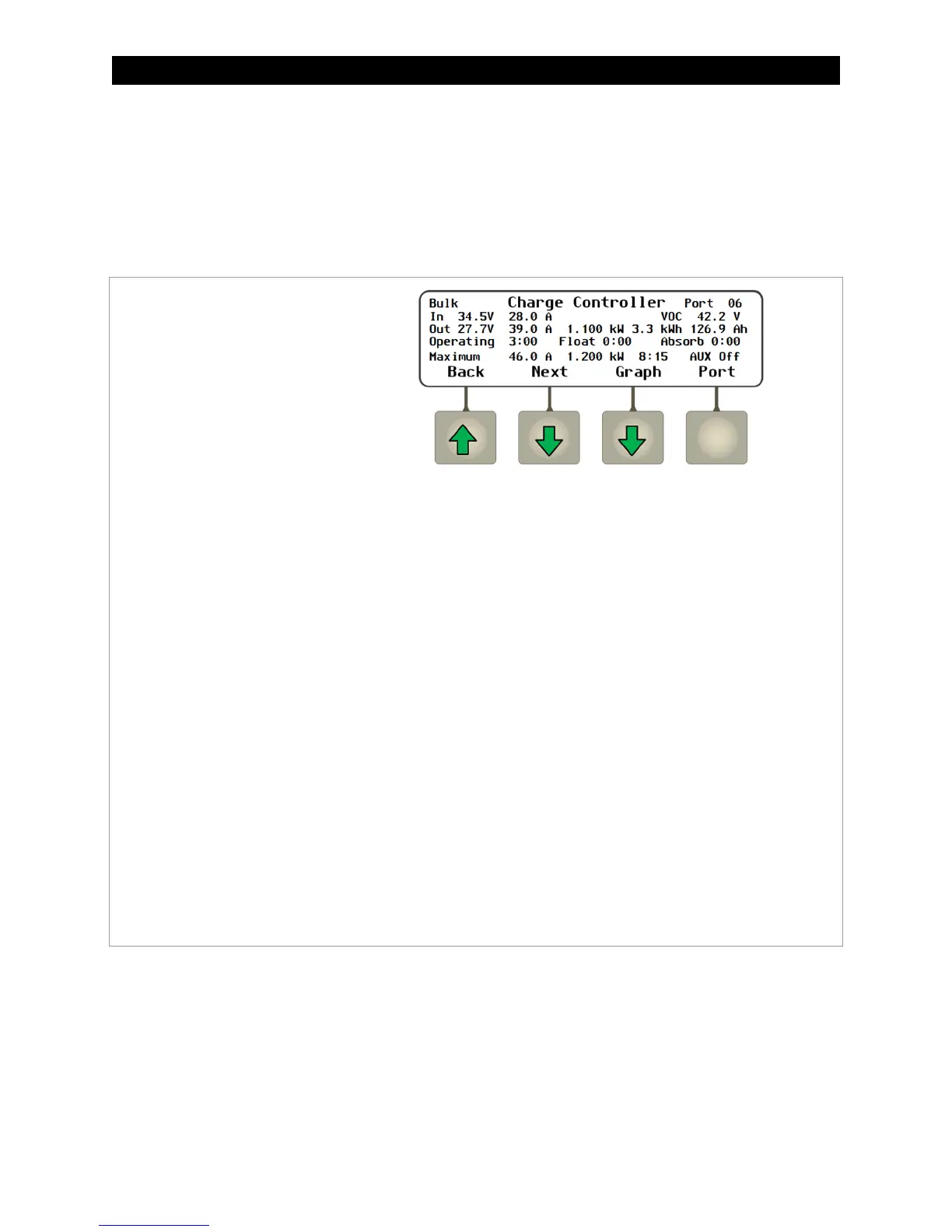 is connected. (See page 35.) Pressing it will enter the Status menu for the charge controller.